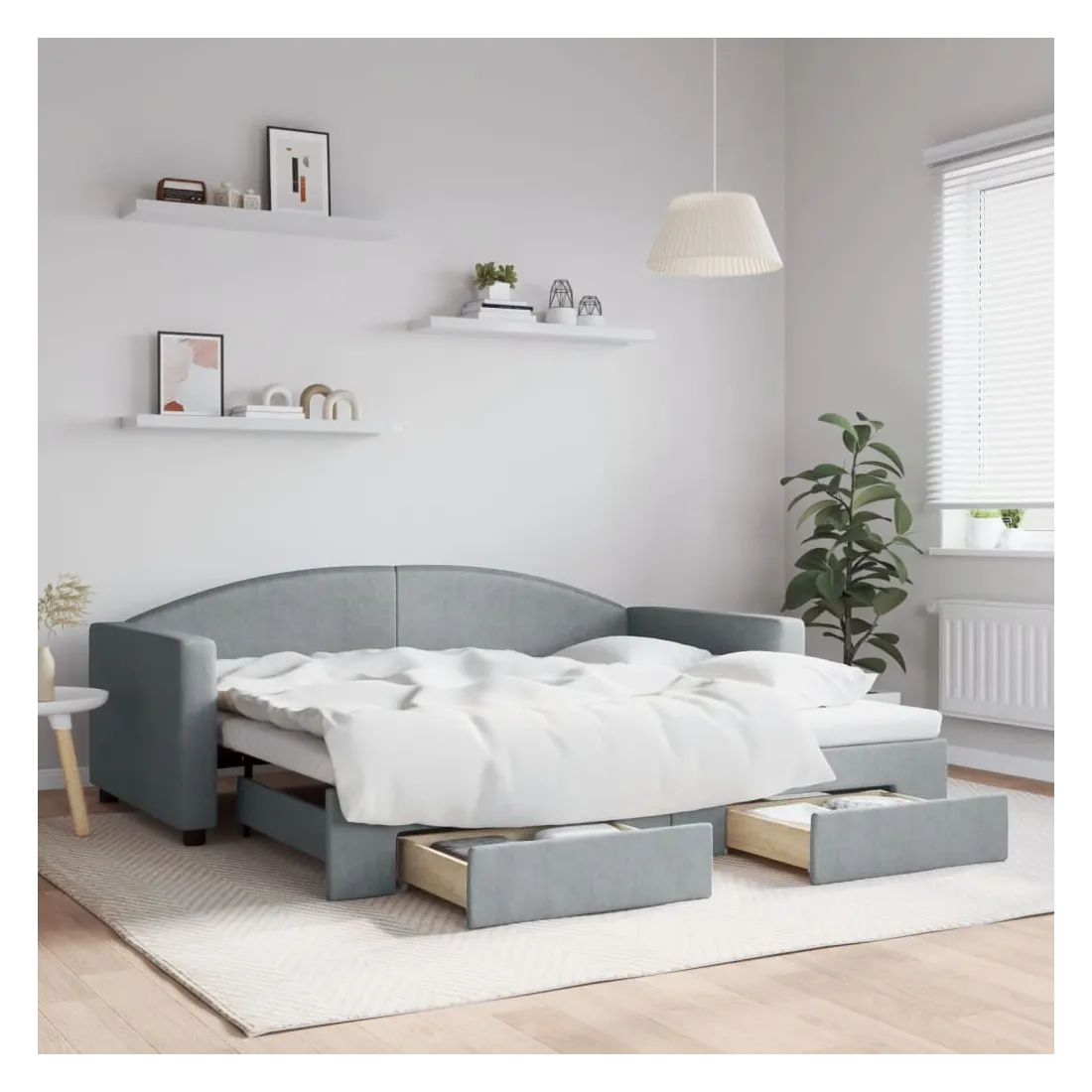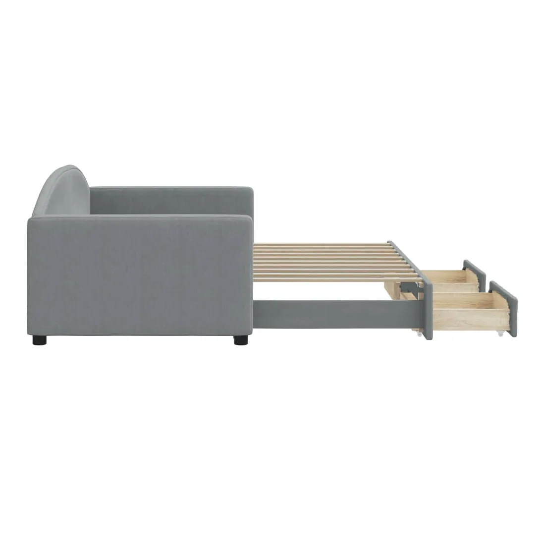 Ce lit de repos 2 en 1 avec lit gigogne, servant à la fois de canapé et de lit, constitue un supplément pratique et accrocheur à votre salon ou chambre à coucher. Lit de repos polyvalent : le canapé-lit fonctionne comme un canapé pendant la journée et se transforme facilement en lit double la nuit en retirant le lit gigogne, offrant une solution pratique pour accueillir des invités et maximiser l'espace.Grand espace de rangement : ce lit d'appoint dispose de deux tiroirs à roulettes qui offrent suffisamment d'espace pour ranger vos vêtements, chaussettes, jouets, coussins, etc.Tissu durable et construction solide : ce canapé-lit a une structure robuste en bois et en métal et est recouvert d'un tissu durable et confortable. Bon à savoir :Les matelas ne sont pas inclus avec ce lit. Nous proposons une sélection variée de matelas. Vous pouvez consulter notre boutique pour trouver les matelas assortis.