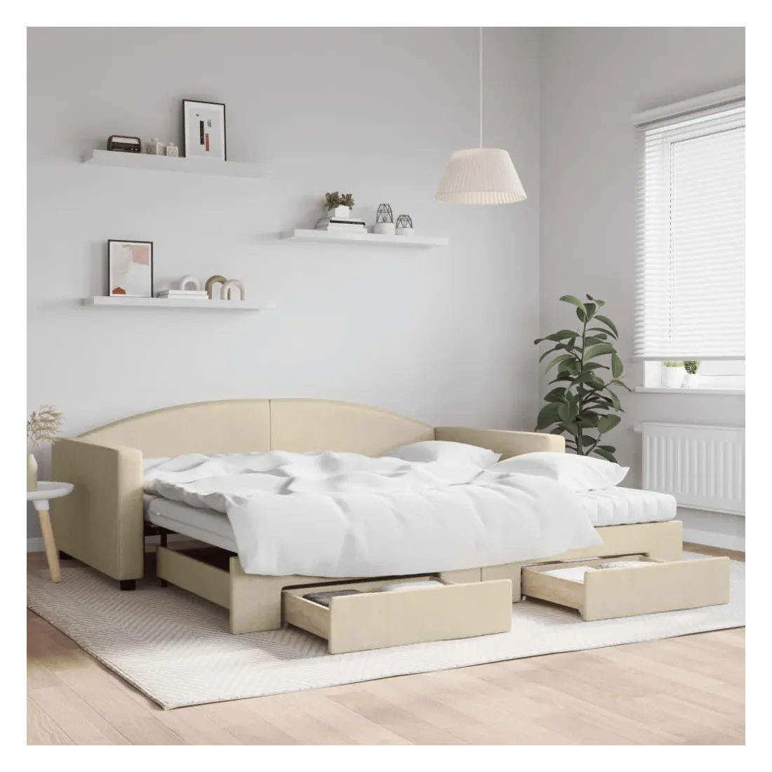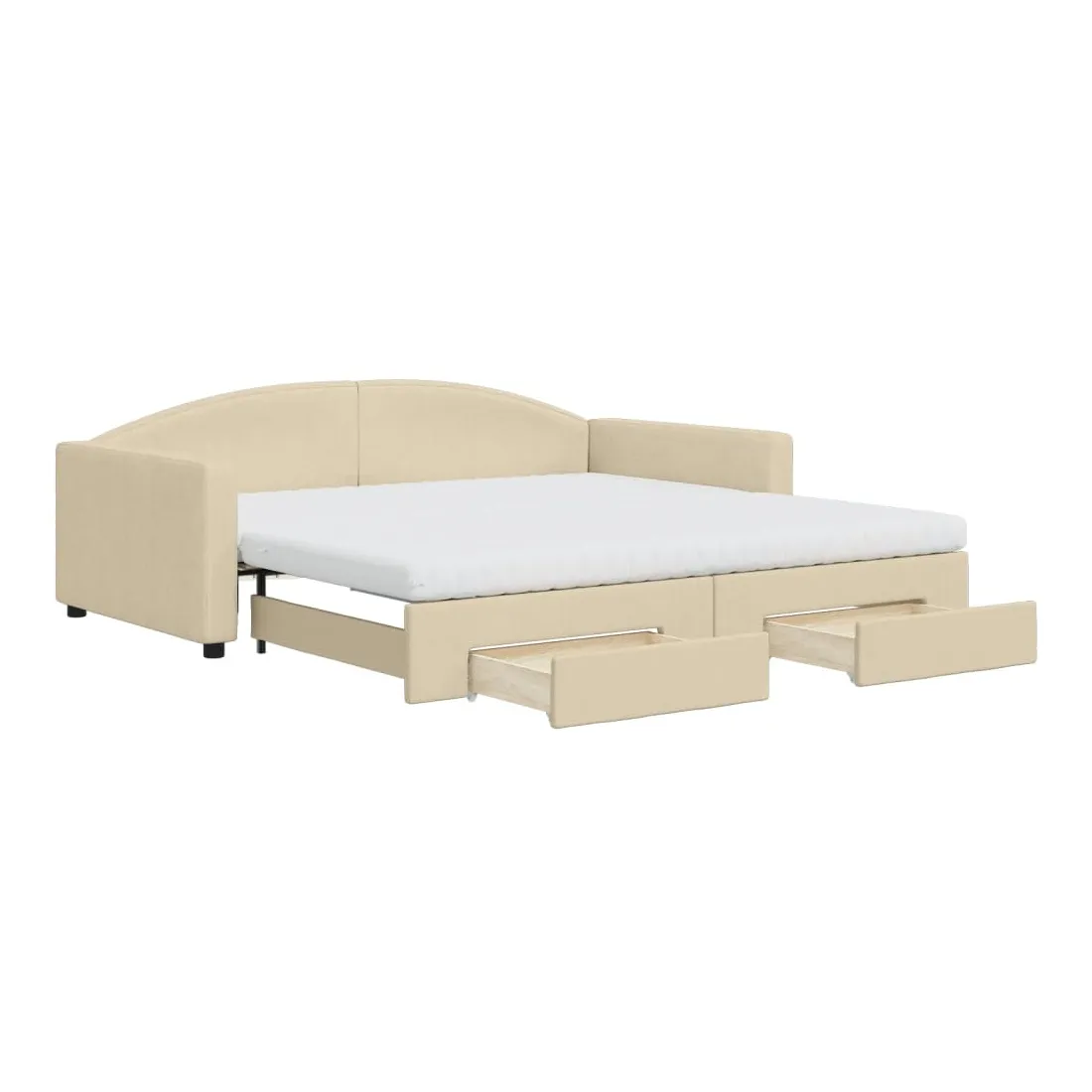 Ce lit de repos 2 en 1 avec lit gigogne, servant à la fois de canapé et de lit, constitue un supplément pratique et accrocheur à votre salon ou chambre à coucher. Lit de repos polyvalent : le canapé-lit fonctionne comme un canapé pendant la journée et se transforme facilement en lit double la nuit en retirant le lit gigogne, offrant une solution pratique pour accueillir des invités et maximiser l'espace.Grand espace de rangement : ce lit d'appoint dispose de deux tiroirs à roulettes qui offrent suffisamment d'espace pour ranger vos vêtements, chaussettes, jouets, coussins, etc.Matelas en mousse confortable : ce lit est fourni avec deux matelas en mousse pour un soutien maximal et un confort optimal.Tissu durable et construction solide : ce canapé-lit a une structure robuste en bois et en métal et est recouvert d'un tissu durable et confortable.