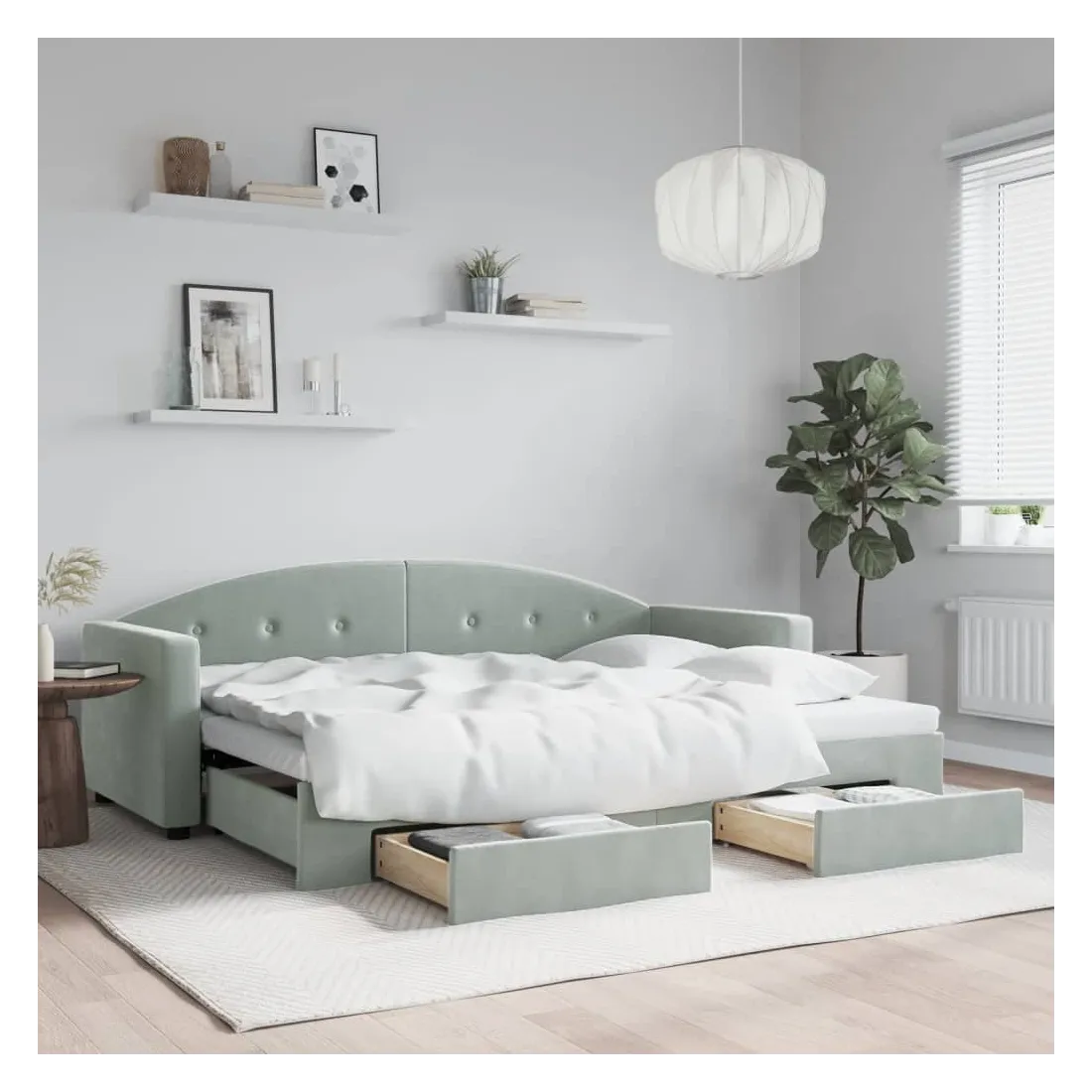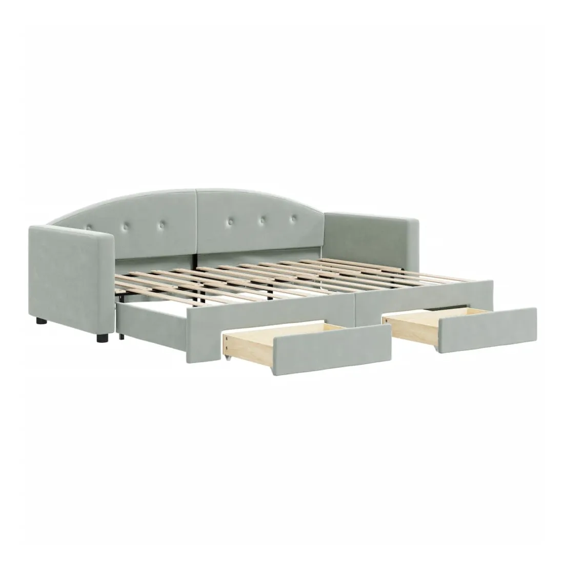 Ce lit de repos 2 en 1 avec lit gigogne et tiroirs, servant à la fois de canapé et de lit, constitue un ajout pratique et accrocheur à votre salon ou chambre à coucher. Lit de repos polyvalent : le canapé-lit fonctionne comme un canapé pendant la journée et se transforme facilement en lit double la nuit en retirant le lit gigogne, offrant une solution pratique pour accueillir des invités et maximiser l'espace.Grand espace de rangement : ce lit d'appoint dispose de deux tiroirs à roulettes qui offrent suffisamment d'espace pour ranger vos vêtements, chaussettes, jouets, coussins, etc.Velours doux et construction solide : ce canapé-lit a un cadre robuste en bois et en métal et est recouvert de velours doux et confortable. Bon à savoir :Les matelas ne sont pas inclus avec ce lit. Nous proposons une sélection variée de matelas. Vous pouvez consulter notre boutique pour trouver les matelas assortis.