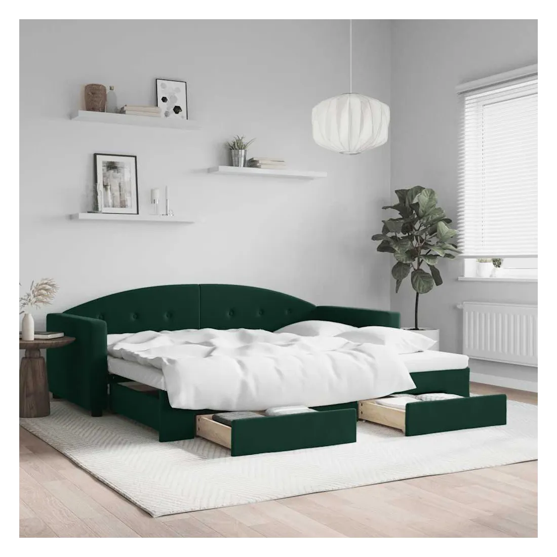 Ce lit de repos 2 en 1 avec lit gigogne et tiroirs, servant à la fois de canapé et de lit, constitue un ajout pratique et accrocheur à votre salon ou chambre à coucher. Lit de repos polyvalent : le canapé-lit fonctionne comme un canapé pendant la journée et se transforme facilement en lit double la nuit en retirant le lit gigogne, offrant une solution pratique pour accueillir des invités et maximiser l'espace.Grand espace de rangement : ce lit d'appoint dispose de deux tiroirs à roulettes qui offrent suffisamment d'espace pour ranger vos vêtements, chaussettes, jouets, coussins, etc.Velours doux et construction solide : ce canapé-lit a un cadre robuste en bois et en métal et est recouvert de velours doux et confortable. Bon à savoir :Les matelas ne sont pas inclus avec ce lit. Nous proposons une sélection variée de matelas. Vous pouvez consulter notre boutique pour trouver les matelas assortis.