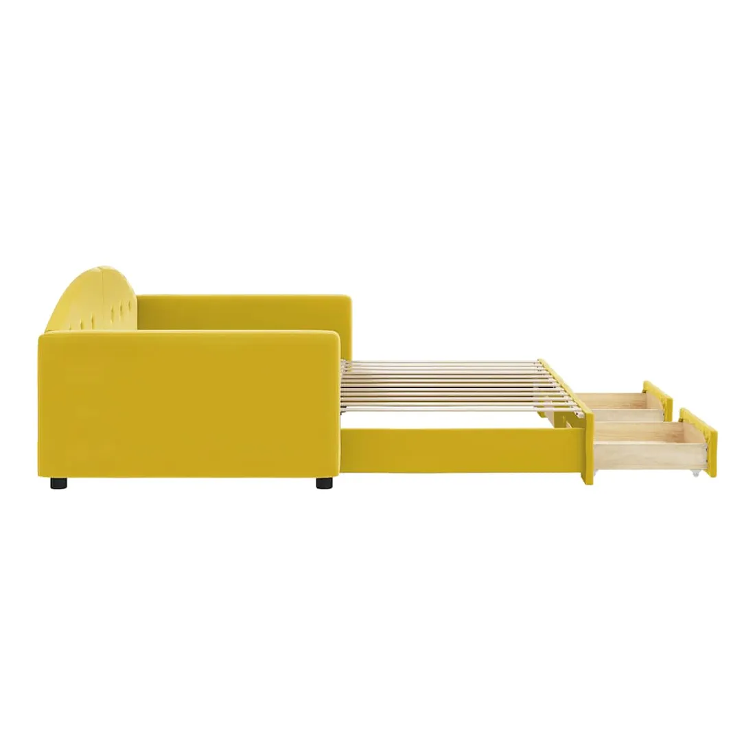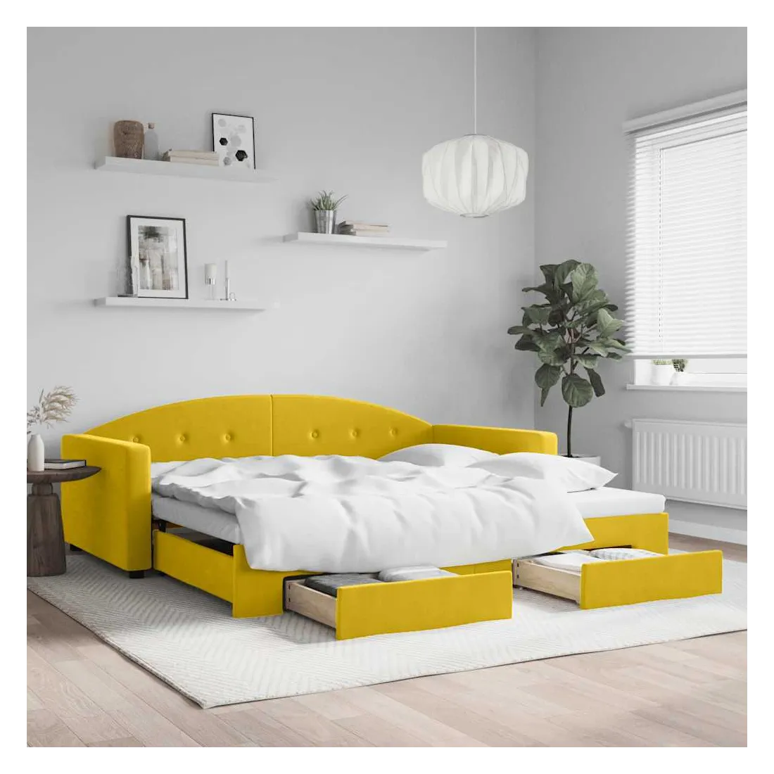 Lit de jour avec gigogne et tiroirs jaune 100x200 cm velours