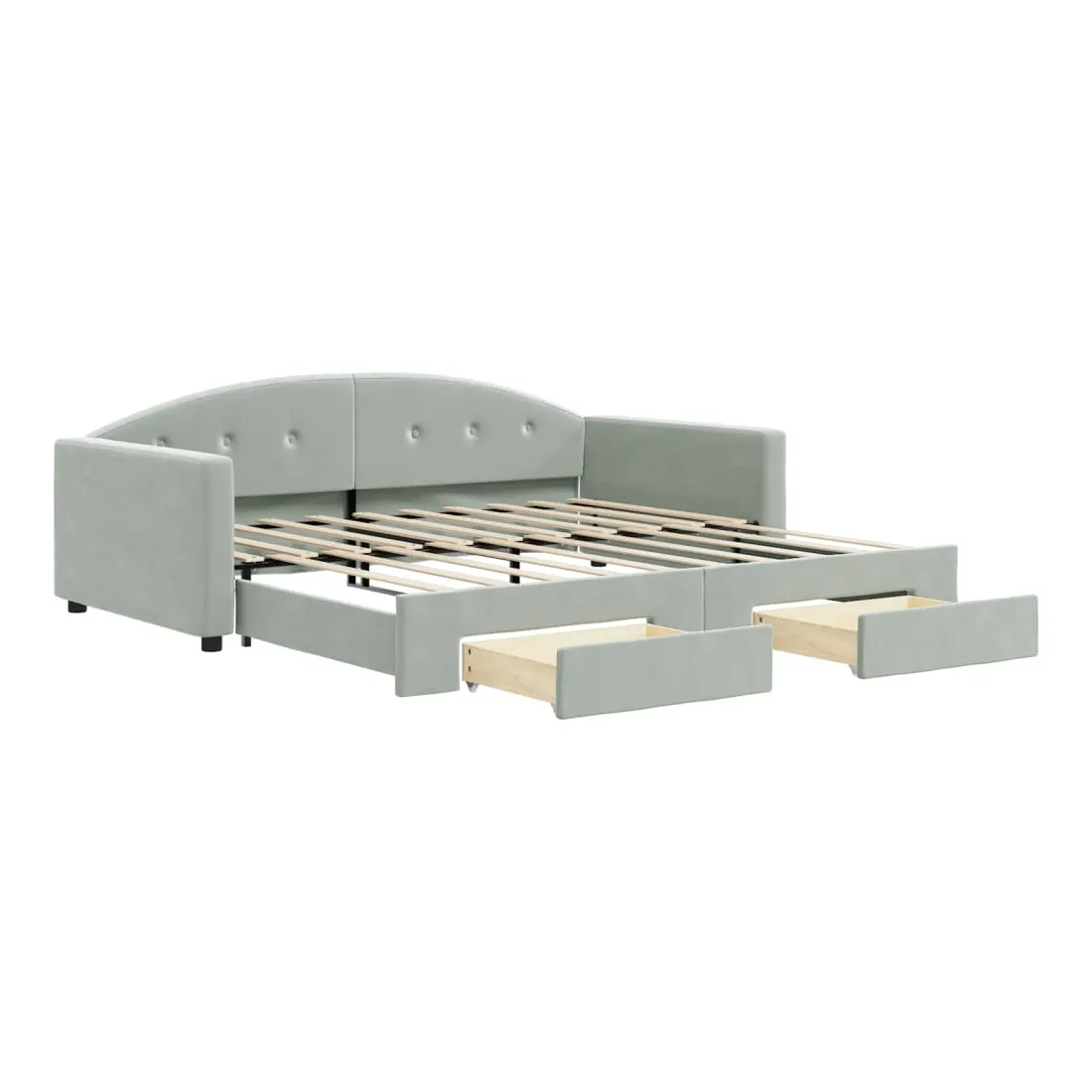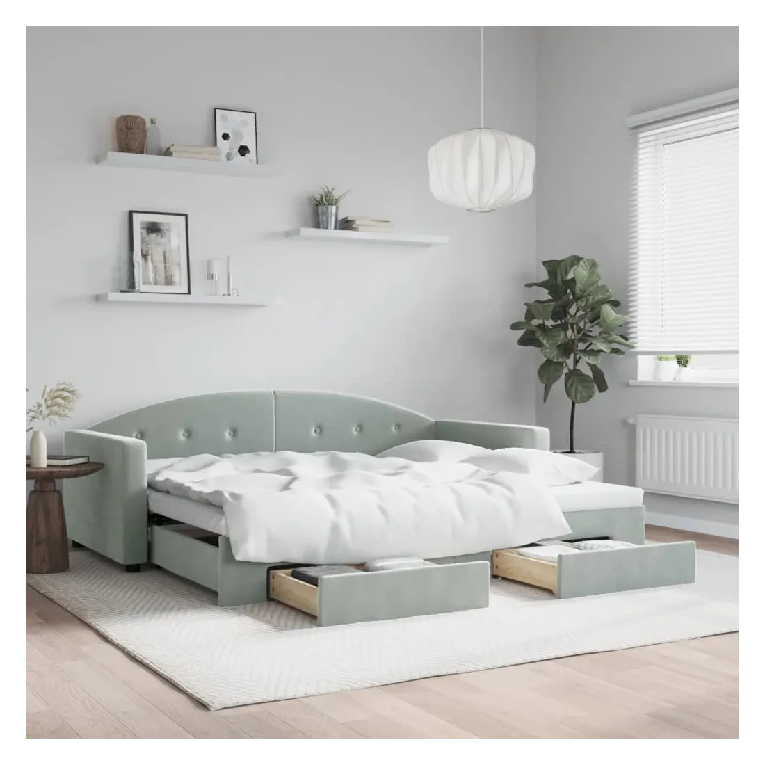 Ce lit de repos 2 en 1 avec lit gigogne et tiroirs, servant à la fois de canapé et de lit, constitue un ajout pratique et accrocheur à votre salon ou chambre à coucher. Lit de repos polyvalent : le canapé-lit fonctionne comme un canapé pendant la journée et se transforme facilement en lit double la nuit en retirant le lit gigogne, offrant une solution pratique pour accueillir des invités et maximiser l'espace.Grand espace de rangement : ce lit d'appoint dispose de deux tiroirs à roulettes qui offrent suffisamment d'espace pour ranger vos vêtements, chaussettes, jouets, coussins, etc.Velours doux et construction solide : ce canapé-lit a un cadre robuste en bois et en métal et est recouvert de velours doux et confortable. Bon à savoir :Les matelas ne sont pas inclus avec ce lit. Nous proposons une sélection variée de matelas. Vous pouvez consulter notre boutique pour trouver les matelas assortis.