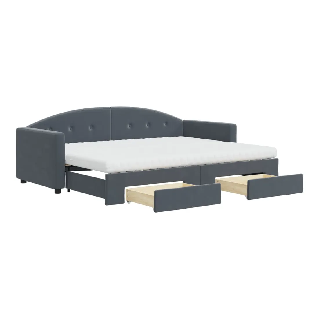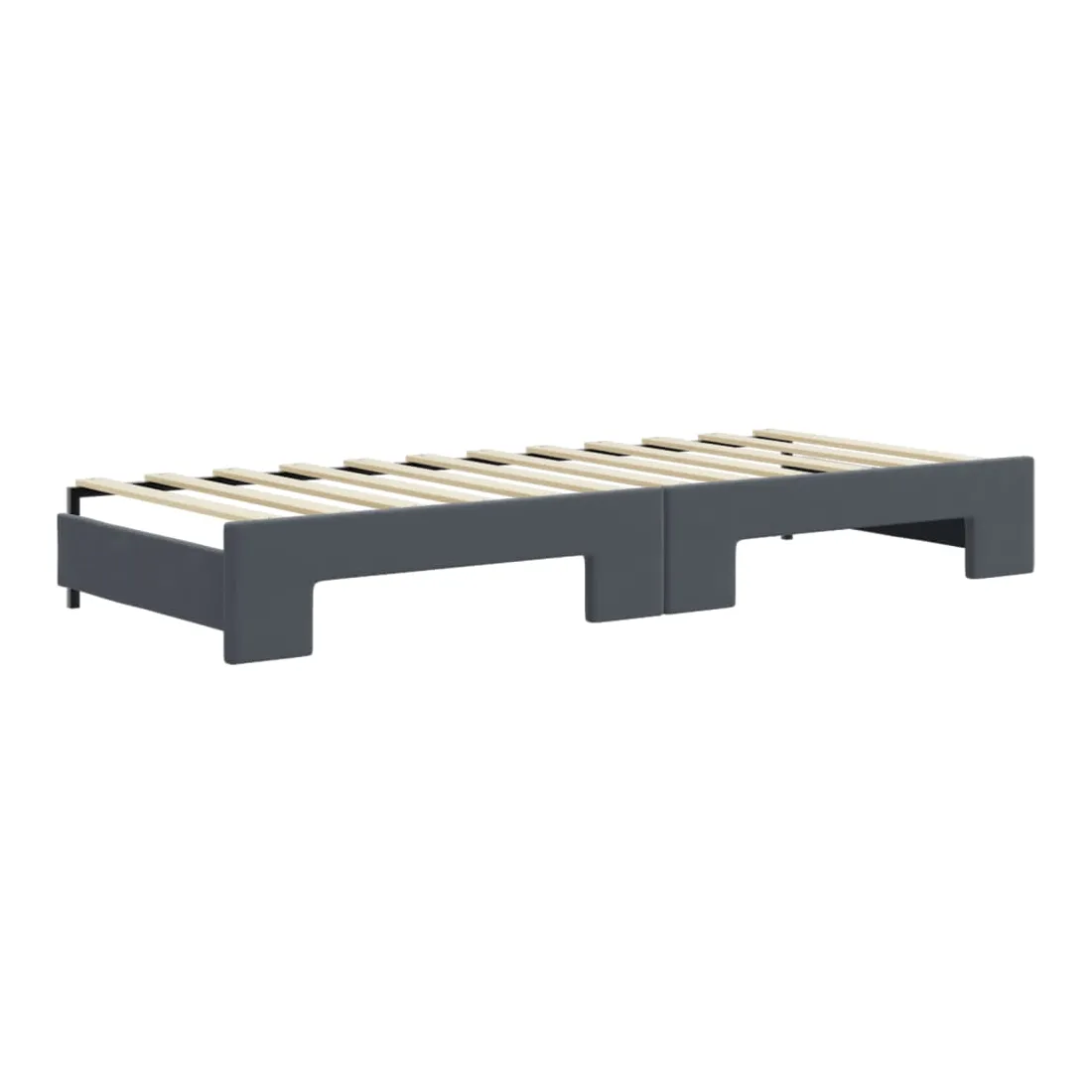 Ce lit de repos 2 en 1 avec lit gigogne et tiroirs, servant à la fois de canapé et de lit, constitue un ajout pratique et accrocheur à votre salon ou chambre à coucher. Lit de repos polyvalent : le canapé-lit fonctionne comme un canapé pendant la journée et se transforme facilement en lit double la nuit en retirant le lit gigogne, offrant une solution pratique pour accueillir des invités et maximiser l'espace. Grand espace de rangement : ce lit d'appoint dispose de deux tiroirs à roulettes qui offrent suffisamment d'espace pour ranger vos vêtements, chaussettes, jouets, coussins, etc. Matelas en mousse confortable : ce lit est fourni avec deux matelas en mousse pour un soutien maximal et un confort optimal. Velours doux et construction solide : ce canapé-lit a un cadre robuste en bois et en métal et est recouvert de velours doux et confortable.