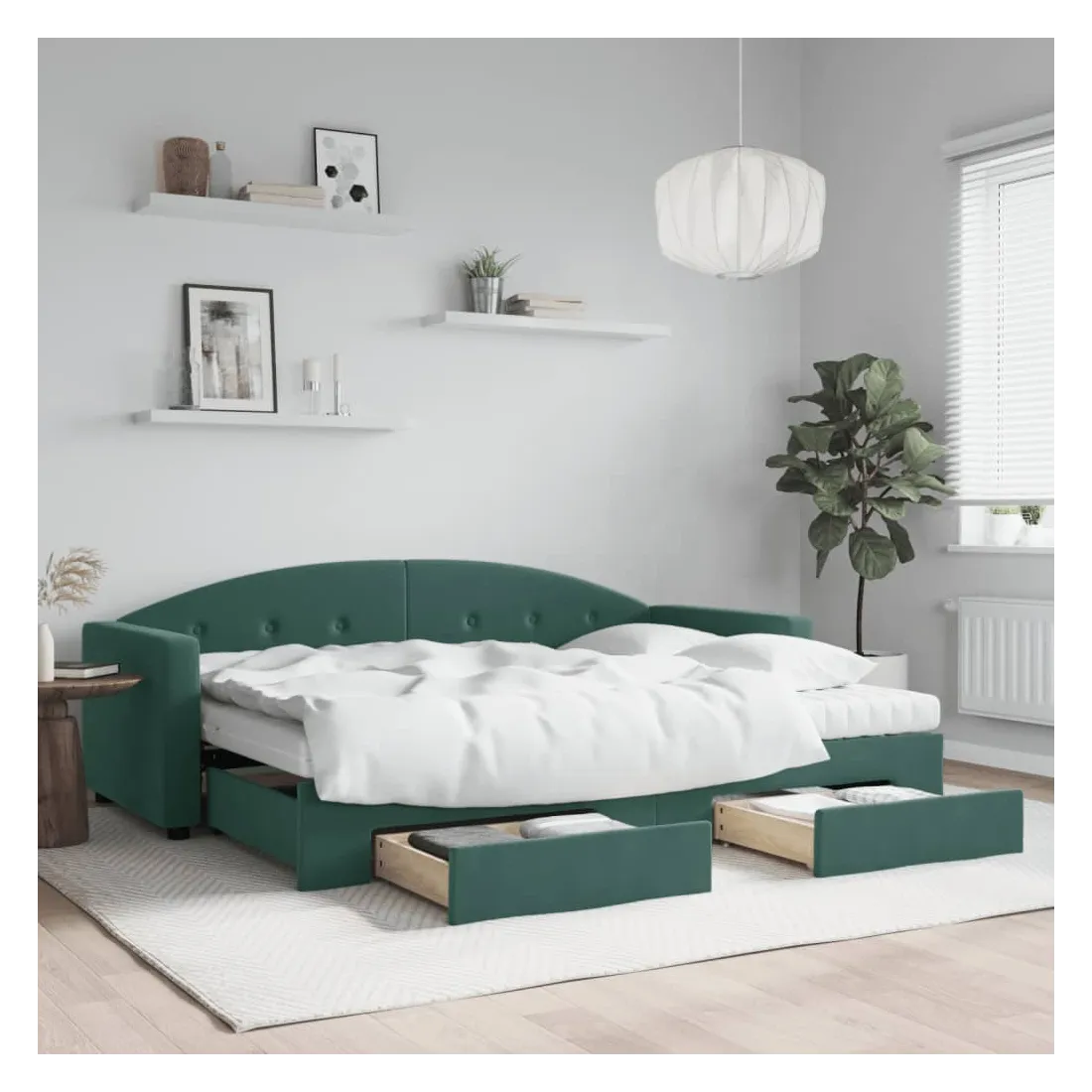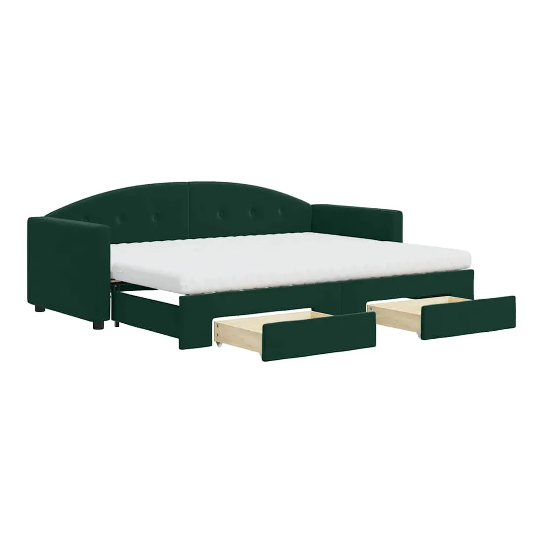 Ce lit de repos 2 en 1 avec lit gigogne et tiroirs, servant à la fois de canapé et de lit, constitue un ajout pratique et accrocheur à votre salon ou chambre à coucher. Lit de repos polyvalent : le canapé-lit fonctionne comme un canapé pendant la journée et se transforme facilement en lit double la nuit en retirant le lit gigogne, offrant une solution pratique pour accueillir des invités et maximiser l'espace. Grand espace de rangement : ce lit d'appoint dispose de deux tiroirs à roulettes qui offrent suffisamment d'espace pour ranger vos vêtements, chaussettes, jouets, coussins, etc. Matelas en mousse confortable : ce lit est fourni avec deux matelas en mousse pour un soutien maximal et un confort optimal. Velours doux et construction solide : ce canapé-lit a un cadre robuste en bois et en métal et est recouvert de velours doux et confortable.