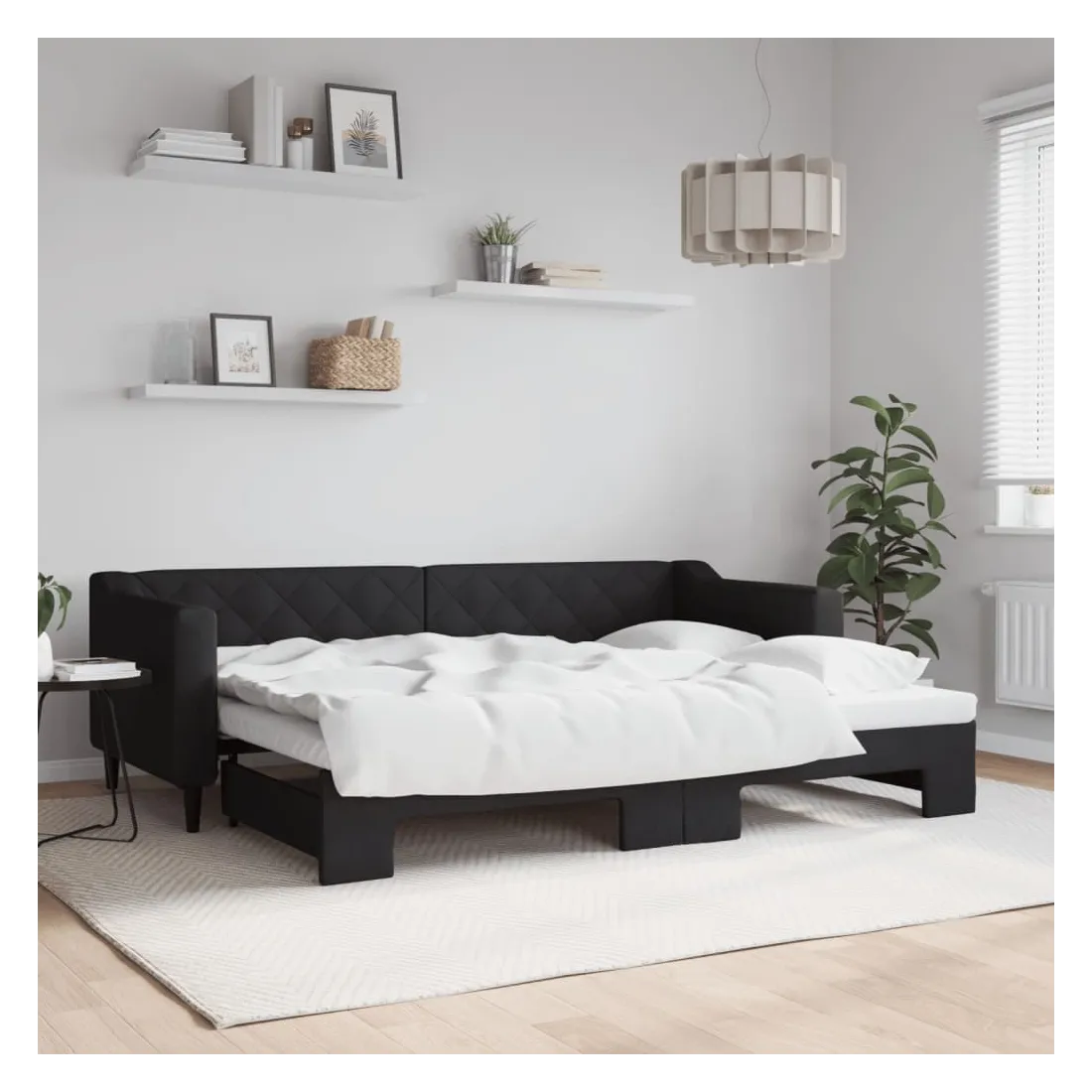 Ce lit de repos 2 en 1 avec lit gigogne, servant à la fois de canapé et de lit, constitue un supplément pratique et accrocheur à votre salon ou chambre à coucher. Lit de repos polyvalent : le canapé-lit fonctionne comme un canapé pendant la journée et se transforme facilement en lit double la nuit en retirant le lit gigogne, offrant une solution pratique pour accueillir des invités et maximiser l'espace.Tissu durable et construction solide : ce canapé-lit a une structure robuste en bois et en métal et est recouvert d'un tissu durable et confortable.Design moderne : le canapé-lit a un design moderne qui présente des lignes épurées, un aspect minimaliste, et ajoutera un style moderne à votre intérieur ! Bon à savoir :Les matelas ne sont pas inclus avec ce lit. Nous proposons une sélection variée de matelas. Vous pouvez consulter notre boutique pour trouver les matelas assortis.