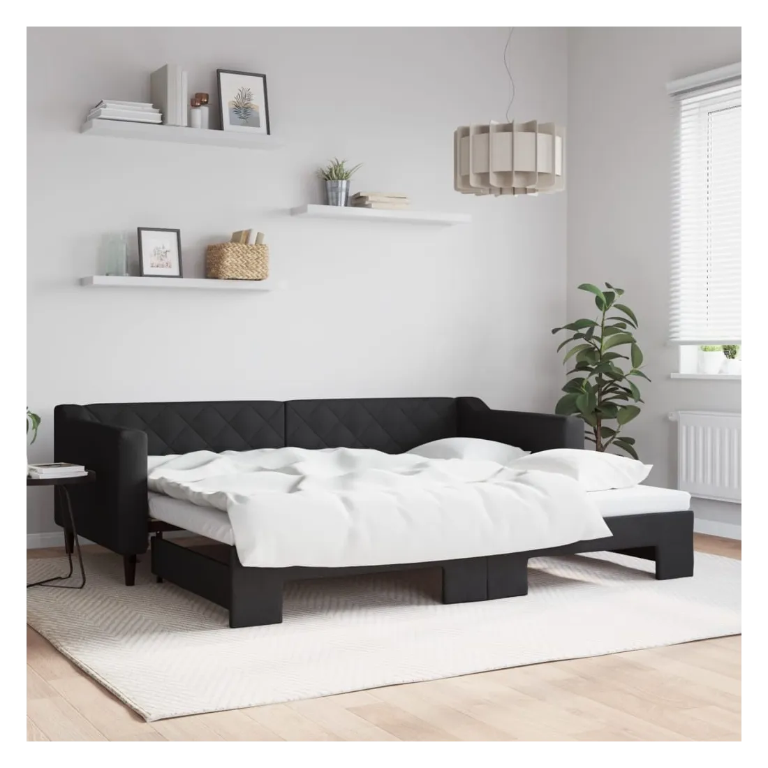 Ce lit de repos 2 en 1 avec lit gigogne, servant à la fois de canapé et de lit, constitue un supplément pratique et accrocheur à votre salon ou chambre à coucher. Lit de repos polyvalent : le canapé-lit fonctionne comme un canapé pendant la journée et se transforme facilement en lit double la nuit en retirant le lit gigogne, offrant une solution pratique pour accueillir des invités et maximiser l'espace.Tissu durable et construction solide : ce canapé-lit a une structure robuste en bois et en métal et est recouvert d'un tissu durable et confortable.Design moderne : le canapé-lit a un design moderne qui présente des lignes épurées, un aspect minimaliste, et ajoutera un style moderne à votre intérieur ! Bon à savoir :Les matelas ne sont pas inclus avec ce lit. Nous proposons une sélection variée de matelas. Vous pouvez consulter notre boutique pour trouver les matelas assortis.