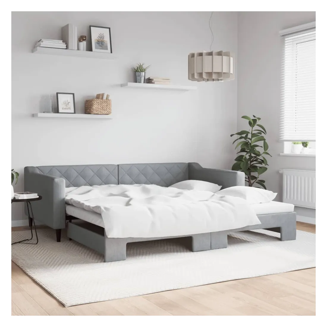 Ce lit de repos 2 en 1 avec lit gigogne, servant à la fois de canapé et de lit, constitue un supplément pratique et accrocheur à votre salon ou chambre à coucher. Lit de repos polyvalent : le canapé-lit fonctionne comme un canapé pendant la journée et se transforme facilement en lit double la nuit en retirant le lit gigogne, offrant une solution pratique pour accueillir des invités et maximiser l'espace.Tissu durable et construction solide : ce canapé-lit a une structure robuste en bois et en métal et est recouvert d'un tissu durable et confortable.Design moderne : le canapé-lit a un design moderne qui présente des lignes épurées, un aspect minimaliste, et ajoutera un style moderne à votre intérieur ! Bon à savoir :Les matelas ne sont pas inclus avec ce lit. Nous proposons une sélection variée de matelas. Vous pouvez consulter notre boutique pour trouver les matelas assortis.