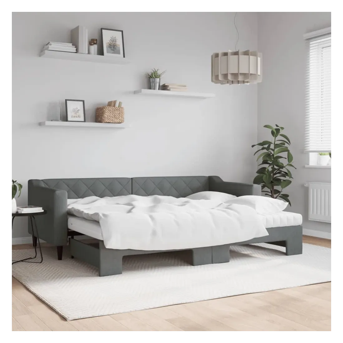 Ce lit de repos 2 en 1 avec lit gigogne, servant à la fois de canapé et de lit, constitue un supplément pratique et accrocheur à votre salon ou chambre à coucher. Lit de repos polyvalent : le canapé-lit fonctionne comme un canapé pendant la journée et se transforme facilement en lit double la nuit en retirant le lit gigogne, offrant une solution pratique pour accueillir des invités et maximiser l'espace.Matelas en mousse confortable : ce lit est fourni avec deux matelas en mousse pour un soutien maximal et un confort optimal.Tissu durable et construction solide : ce canapé-lit a une structure robuste en bois et en métal et est recouvert d'un tissu durable et confortable.Design moderne : le canapé-lit a un design moderne qui présente des lignes épurées, un aspect minimaliste, et ajoutera un style moderne à votre intérieur !