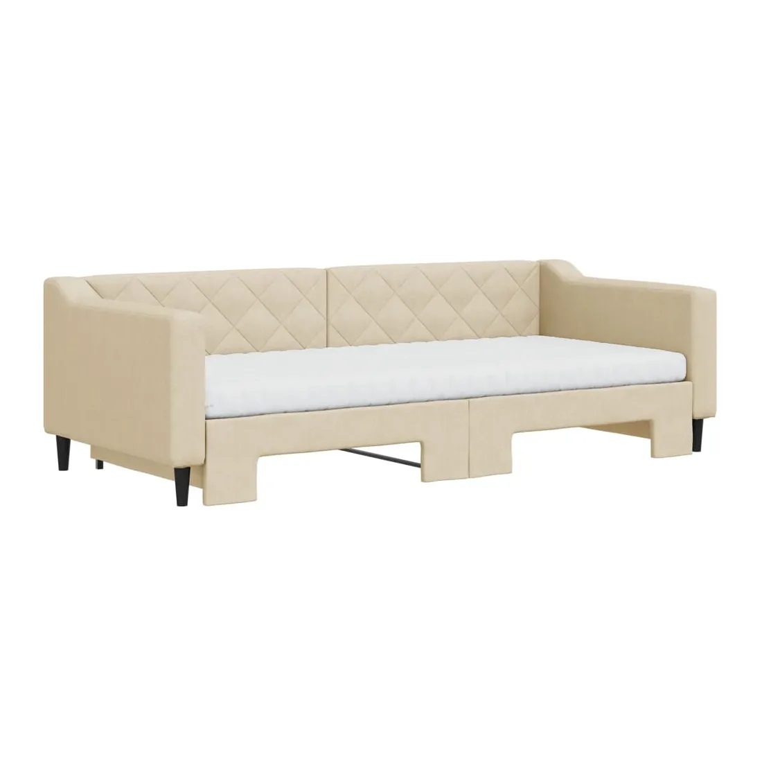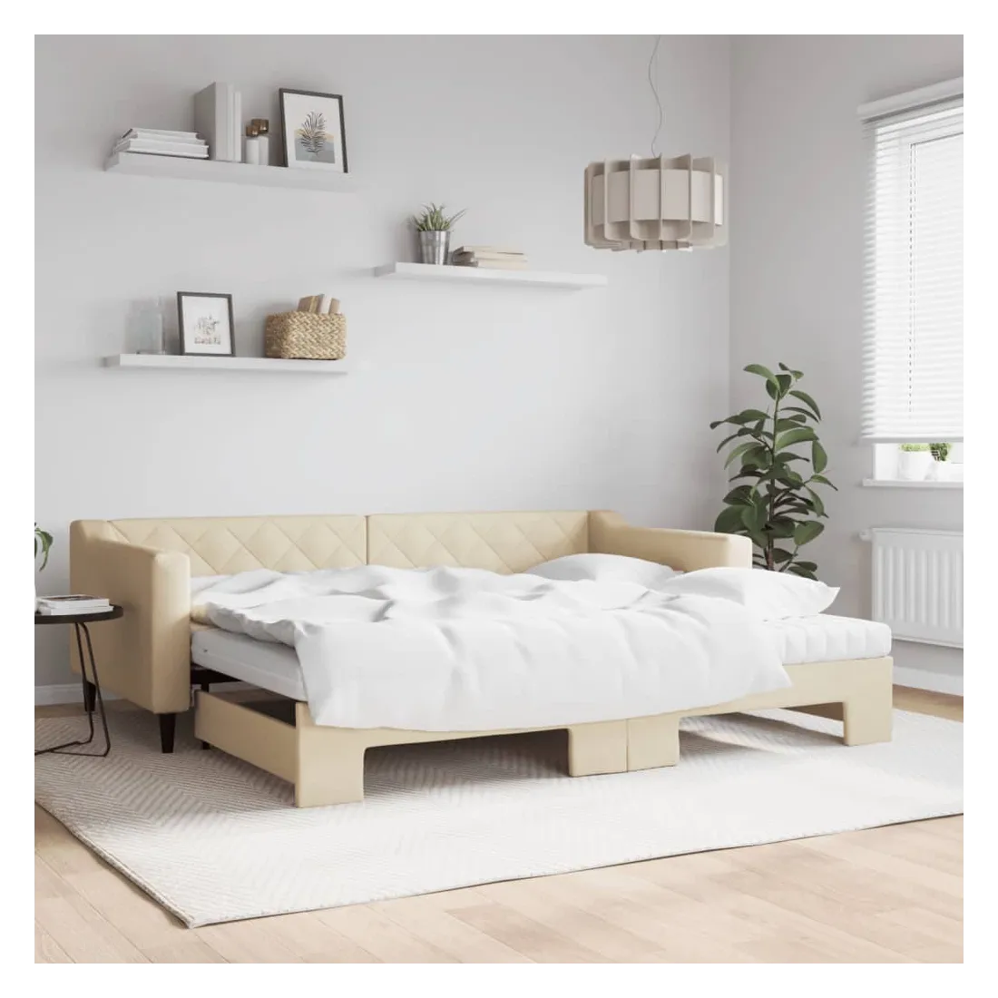 Ce lit de repos 2 en 1 avec lit gigogne, servant à la fois de canapé et de lit, constitue un supplément pratique et accrocheur à votre salon ou chambre à coucher. Lit de repos polyvalent : le canapé-lit fonctionne comme un canapé pendant la journée et se transforme facilement en lit double la nuit en retirant le lit gigogne, offrant une solution pratique pour accueillir des invités et maximiser l'espace.Matelas en mousse confortable : ce lit est fourni avec deux matelas en mousse pour un soutien maximal et un confort optimal.Tissu durable et construction solide : ce canapé-lit a une structure robuste en bois et en métal et est recouvert d'un tissu durable et confortable.Design moderne : le canapé-lit a un design moderne qui présente des lignes épurées, un aspect minimaliste, et ajoutera un style moderne à votre intérieur !