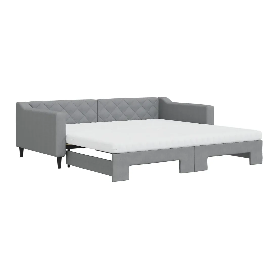 Ce lit de repos 2 en 1 avec lit gigogne, servant à la fois de canapé et de lit, constitue un supplément pratique et accrocheur à votre salon ou chambre à coucher. Lit de repos polyvalent : le canapé-lit fonctionne comme un canapé pendant la journée et se transforme facilement en lit double la nuit en retirant le lit gigogne, offrant une solution pratique pour accueillir des invités et maximiser l'espace.Matelas en mousse confortable : ce lit est fourni avec deux matelas en mousse pour un soutien maximal et un confort optimal.Tissu durable et construction solide : ce canapé-lit a une structure robuste en bois et en métal et est recouvert d'un tissu durable et confortable.Design moderne : le canapé-lit a un design moderne qui présente des lignes épurées, un aspect minimaliste, et ajoutera un style moderne à votre intérieur !