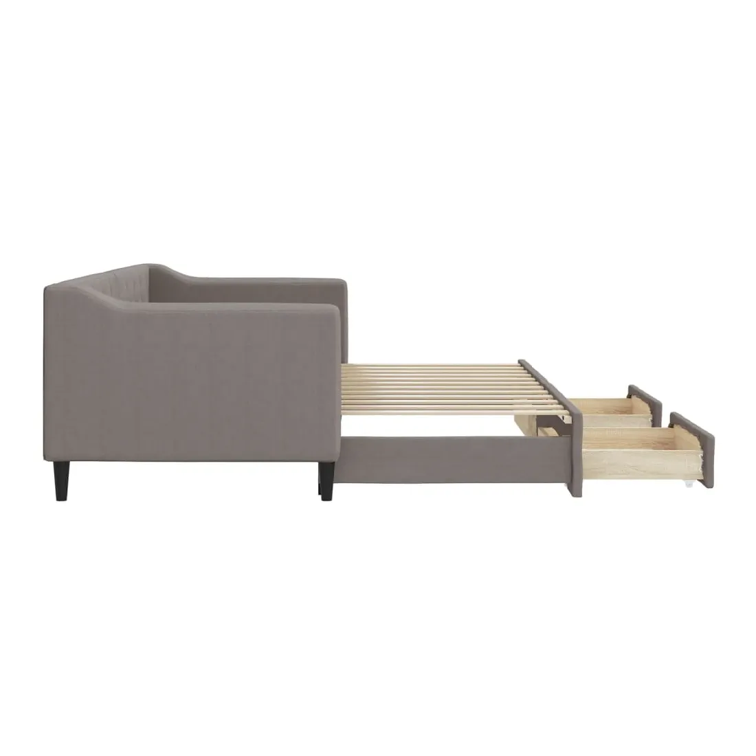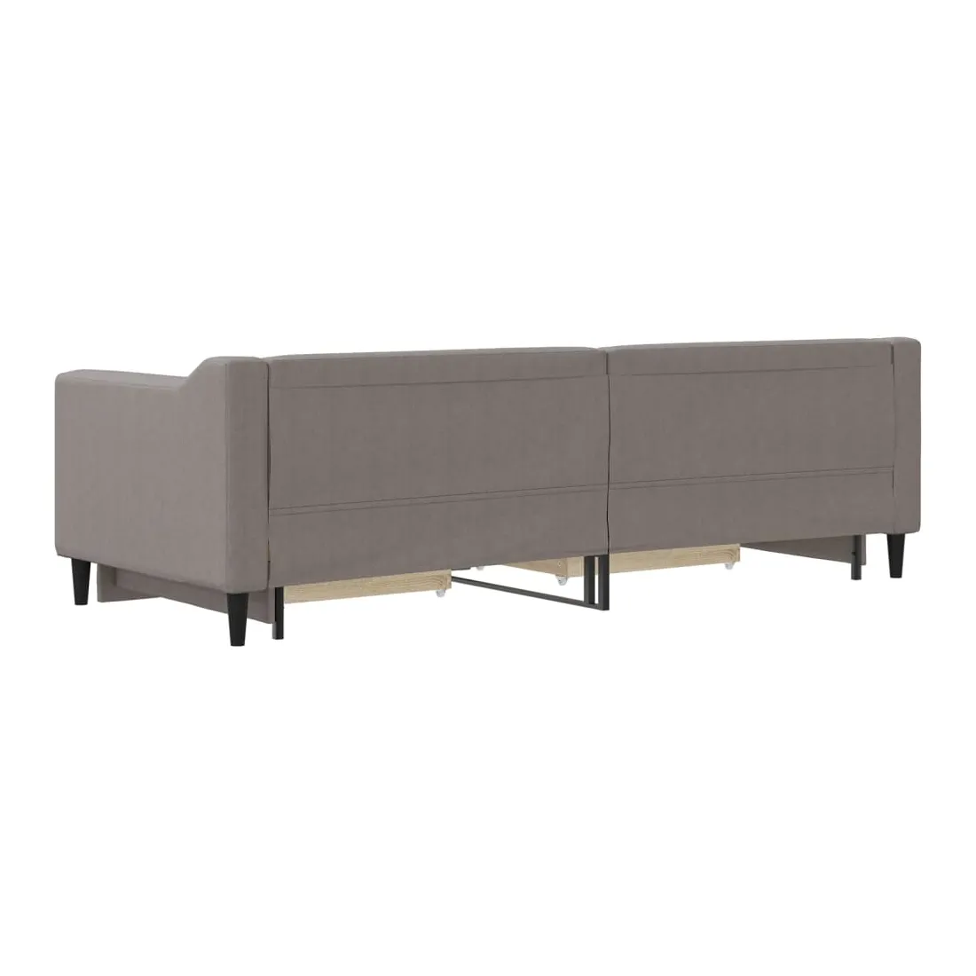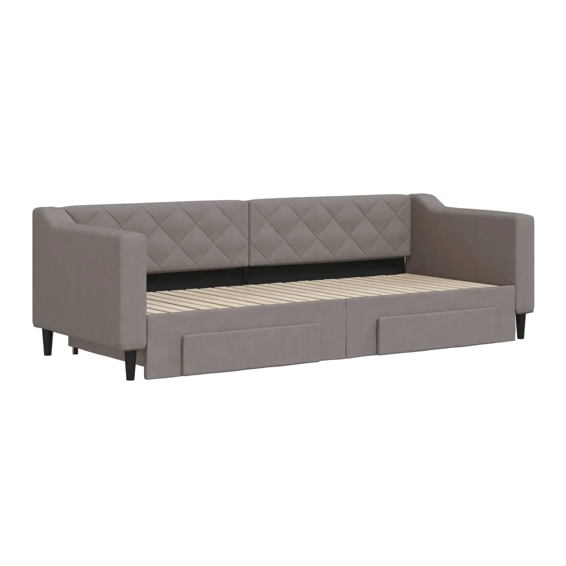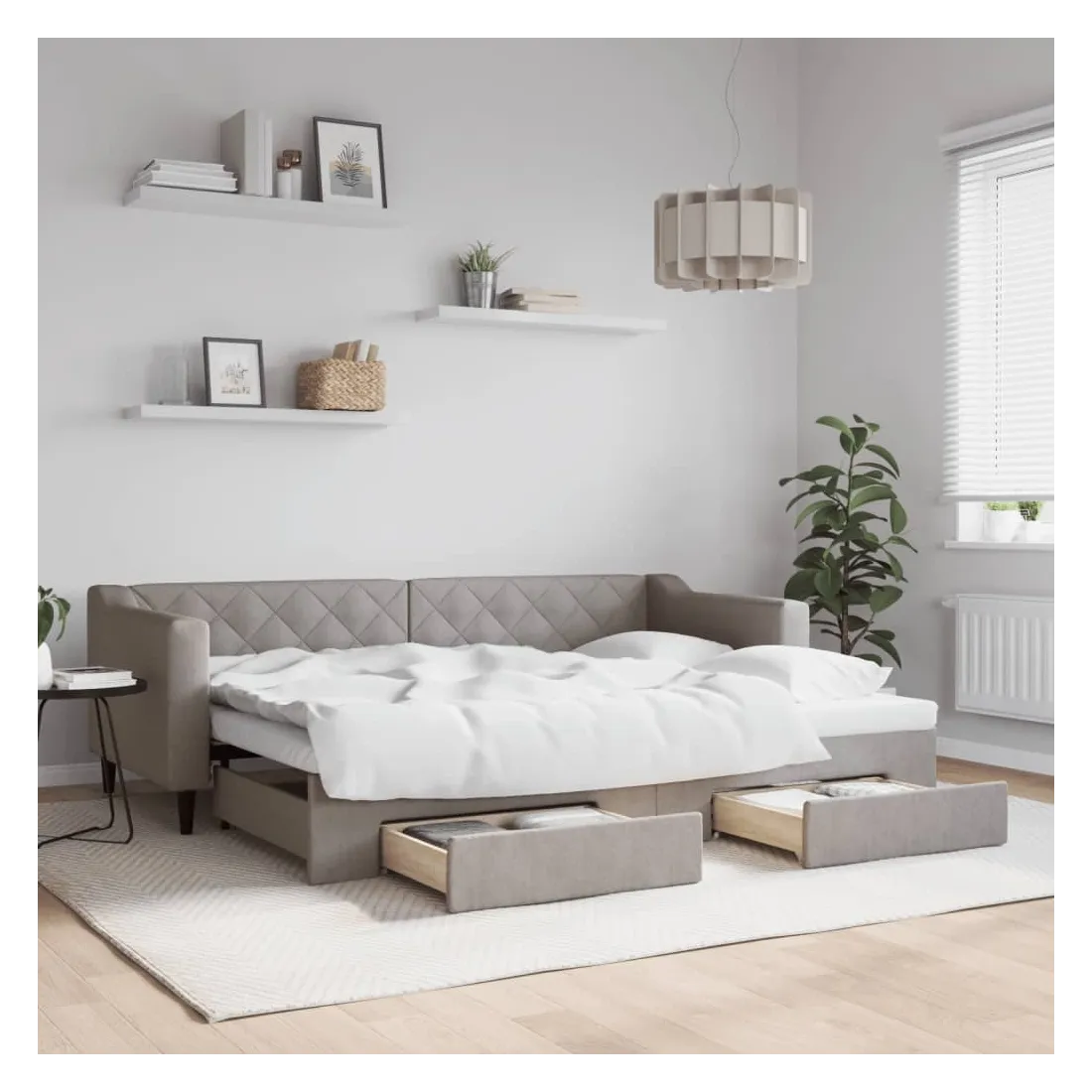 Ce lit de repos 2 en 1 avec lit gigogne, servant à la fois de canapé et de lit, constitue un supplément pratique et accrocheur à votre salon ou chambre à coucher. Lit de repos polyvalent : le canapé-lit fonctionne comme un canapé pendant la journée et se transforme facilement en lit double la nuit en retirant le lit gigogne, offrant une solution pratique pour accueillir des invités et maximiser l'espace. Grand espace de rangement : ce lit d'appoint dispose de deux tiroirs à roulettes qui offrent suffisamment d'espace pour ranger vos vêtements, chaussettes, jouets, coussins, etc. Tissu durable et construction solide : ce canapé-lit a une structure robuste en bois et en métal et est recouvert d'un tissu durable et confortable.Design moderne : le canapé-lit a un design moderne qui présente des lignes épurées, un aspect minimaliste, et ajoutera un style moderne à votre intérieur ! Bon à savoir :Les matelas ne sont pas inclus avec ce lit. Nous proposons une sélection variée de matelas. Vous pouvez consulter notre boutique pour trouver les matelas assortis.