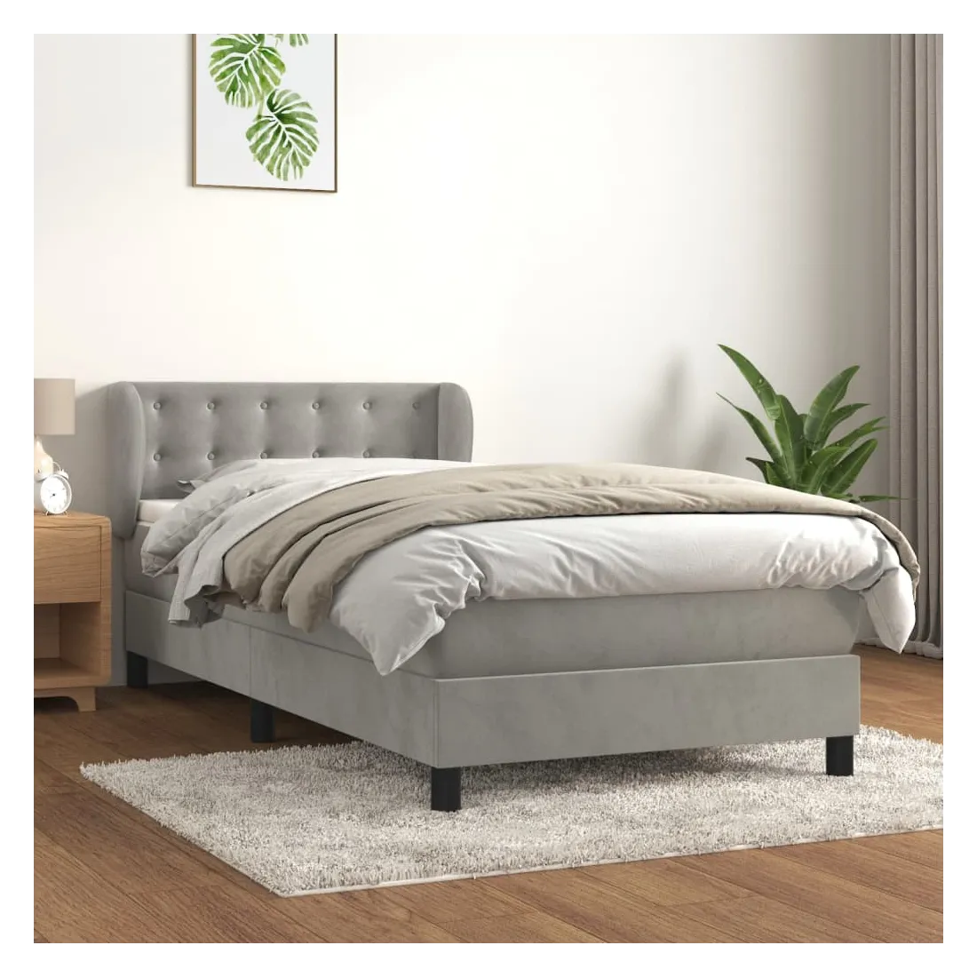 Utilisez ce lit à sommier pour profiter d'une nuit de sommeil réparatrice ! Il vous offre une relaxation maximale et un sommeil agréable. Velours doux : le velours est un tissu doux et luxueux qui se reconnaît à son tas dense de fibres uniformément coupées qui ont une touche lisse. Le tissu en velours présente un toucher doux distinctif, ce qui le rend confortable au toucher.Tête de lit pratique : la tête de lit est réglable en hauteur selon vos préférences. La tête de lit vous offre un excellent soutien du dos lorsque vous êtes assis dans votre lit pour lire ou regarder la télévision.Matelas à ressorts ensachés : le ressort ensaché individuel intégré est connu pour sa très haute qualité tout en assurant un haut niveau de durabilité et d'adaptabilité. Il peut absorber efficacement le bruit et les chocs causés par les sauts et les rotations.Support moyen-dur : ce matelas de lit offre une stabilité accrue et juste le niveau de fermeté sans sacrifier le confort. Il est donc idéal pour les personnes qui dorment sur le dos ou sur le ventre.Protège-matelas doux pour la peau : le protège-matelas est recouvert d'un tissu résistant et doux pour la peau, ce qui le rend souple et confortable. Remarque :Pour des raisons d'hygiène, le matelas ne peut pas être retourné si l'emballage est retiré ou ouvert.Chaque produit est livré avec un manuel de montage dans la boîte pour un montage facile.