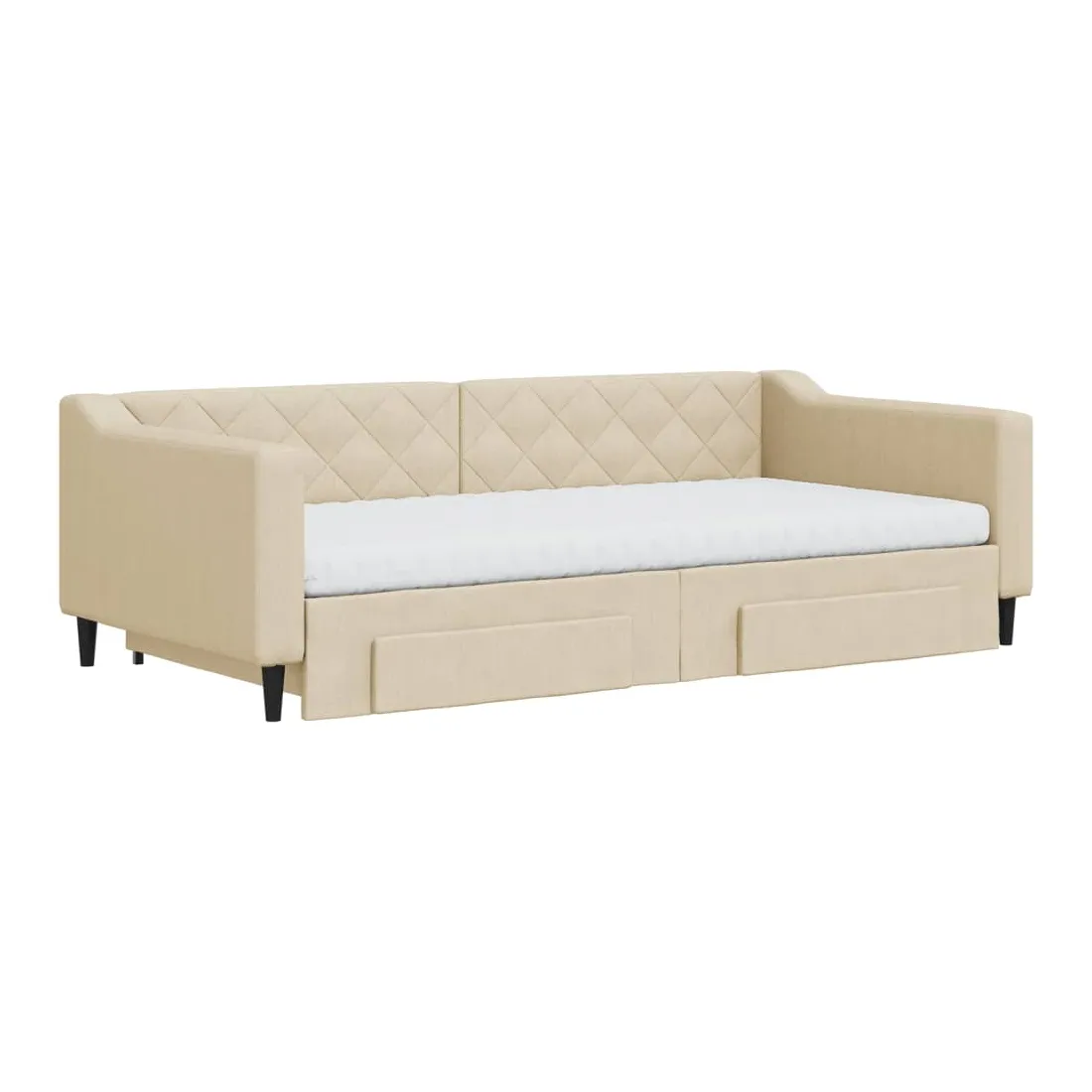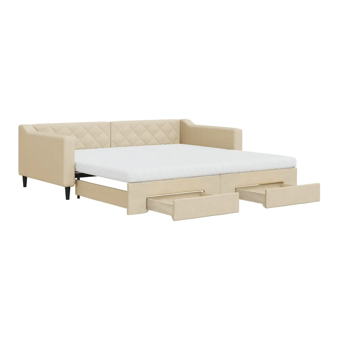 Ce lit de repos 2 en 1 avec lit gigogne, servant à la fois de canapé et de lit, constitue un supplément pratique et accrocheur à votre salon ou chambre à coucher. Lit de repos polyvalent : le canapé-lit fonctionne comme un canapé pendant la journée et se transforme facilement en lit double la nuit en retirant le lit gigogne, offrant une solution pratique pour accueillir des invités et maximiser l'espace. Grand espace de rangement : ce lit d'appoint dispose de deux tiroirs à roulettes qui offrent suffisamment d'espace pour ranger vos vêtements, chaussettes, jouets, coussins, etc. Matelas en mousse confortable : ce lit est fourni avec deux matelas en mousse pour un soutien maximal et un confort optimal. Tissu durable et construction solide : ce canapé-lit a une structure robuste en bois et en métal et est recouvert d'un tissu durable et confortable.