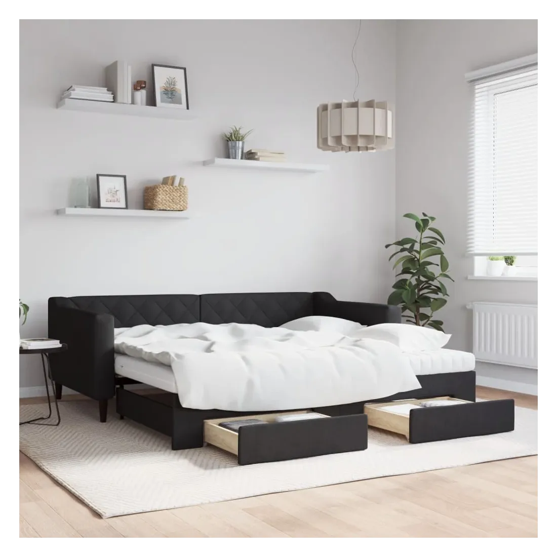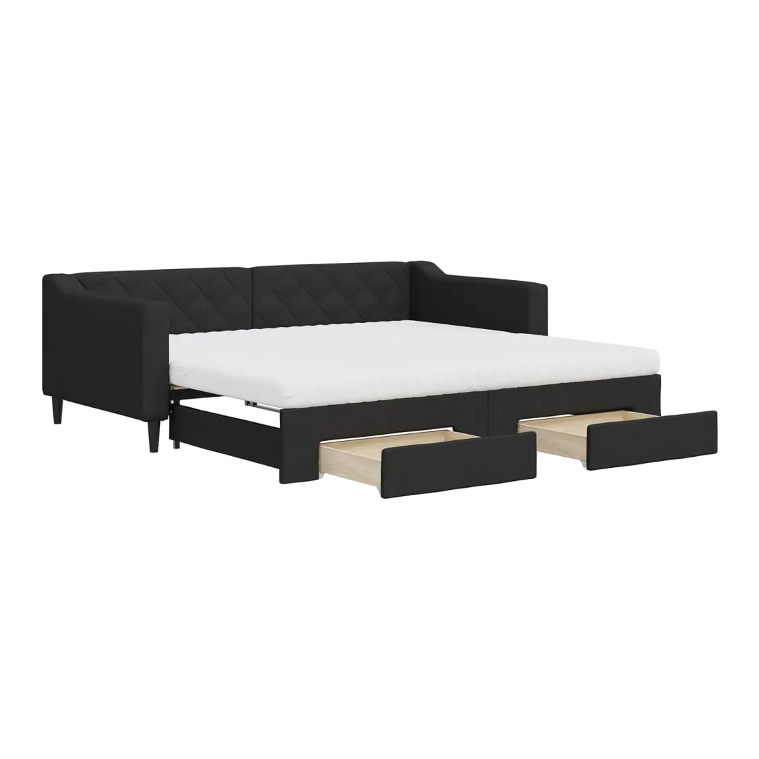Ce lit de repos 2 en 1 avec lit gigogne, servant à la fois de canapé et de lit, constitue un supplément pratique et accrocheur à votre salon ou chambre à coucher. Lit de repos polyvalent : le canapé-lit fonctionne comme un canapé pendant la journée et se transforme facilement en lit double la nuit en retirant le lit gigogne, offrant une solution pratique pour accueillir des invités et maximiser l'espace. Grand espace de rangement : ce lit d'appoint dispose de deux tiroirs à roulettes qui offrent suffisamment d'espace pour ranger vos vêtements, chaussettes, jouets, coussins, etc. Matelas en mousse confortable : ce lit est fourni avec deux matelas en mousse pour un soutien maximal et un confort optimal. Tissu durable et construction solide : ce canapé-lit a une structure robuste en bois et en métal et est recouvert d'un tissu durable et confortable.