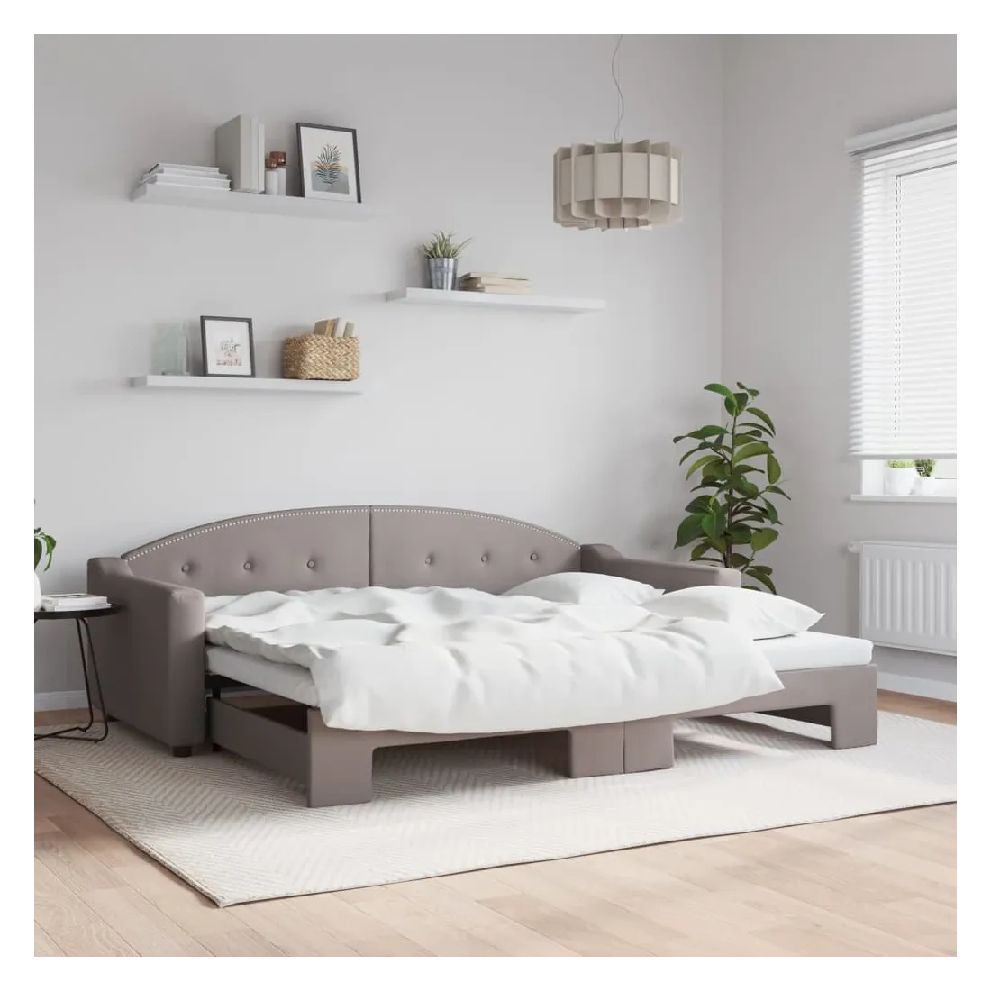 Ce lit de repos 2 en 1 avec lit gigogne, servant à la fois de canapé et de lit, constitue un supplément pratique et accrocheur à votre salon ou chambre à coucher. Lit de repos polyvalent : le canapé-lit fonctionne comme un canapé pendant la journée et se transforme facilement en lit double la nuit en retirant le lit gigogne, offrant une solution pratique pour accueillir des invités et maximiser l'espace. Tissu durable : lit d'appoint est en tissu. Le tissu présente un aspect simple et épuré tout en restant respirant et durable. Construction solide : la structure en bois et en métal du lit assure robustesse et stabilité. Bon à savoir :Les matelas ne sont pas inclus avec ce lit de repos. Nous proposons une sélection variée de matelas. Vous pouvez consulter notre boutique pour les matelas assortis.