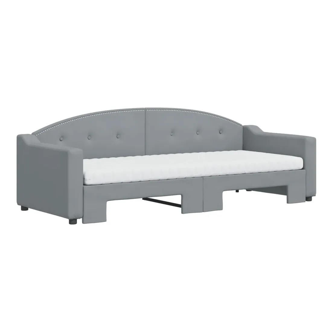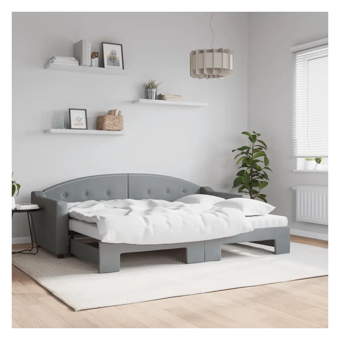 Ce lit de repos 2 en 1 avec lit gigogne, servant à la fois de canapé et de lit, constitue un supplément pratique et accrocheur à votre salon ou chambre à coucher. Lit de repos polyvalent : le canapé-lit fonctionne comme un canapé pendant la journée et se transforme facilement en lit double la nuit en retirant le lit gigogne, offrant une solution pratique pour accueillir des invités et maximiser l'espace. Matelas en mousse confortable : ce lit est fourni avec deux matelas en mousse pour un soutien maximal et un confort optimal. Tissu durable et construction solide : ce canapé-lit a une structure robuste en bois et en métal et est recouvert d'un tissu durable et confortable.