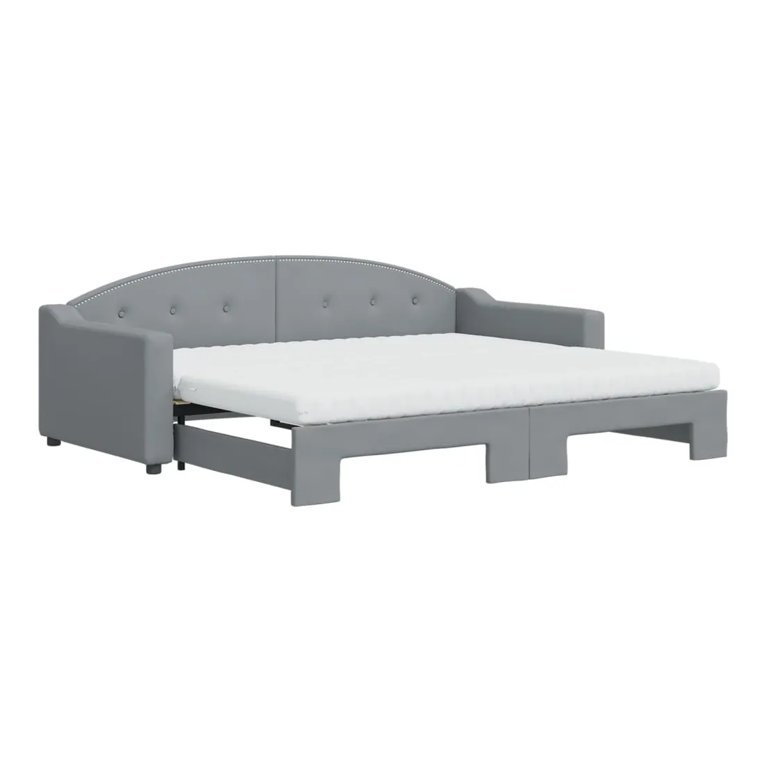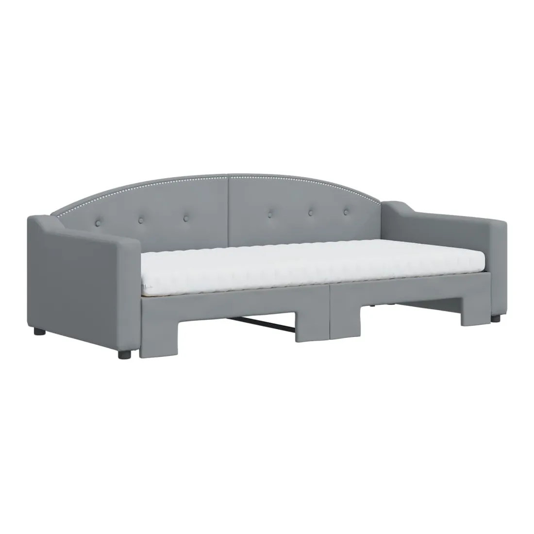 Ce lit de repos 2 en 1 avec lit gigogne, servant à la fois de canapé et de lit, constitue un supplément pratique et accrocheur à votre salon ou chambre à coucher. Lit de repos polyvalent : le canapé-lit fonctionne comme un canapé pendant la journée et se transforme facilement en lit double la nuit en retirant le lit gigogne, offrant une solution pratique pour accueillir des invités et maximiser l'espace. Matelas en mousse confortable : ce lit est fourni avec deux matelas en mousse pour un soutien maximal et un confort optimal. Tissu durable et construction solide : ce canapé-lit a une structure robuste en bois et en métal et est recouvert d'un tissu durable et confortable.