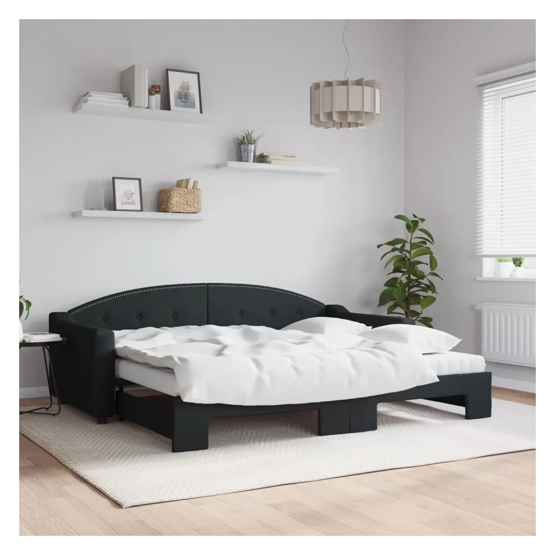 Ce lit de repos 2 en 1 avec lit gigogne, servant à la fois de canapé et de lit, constitue un supplément pratique et accrocheur à votre salon ou chambre à coucher. Lit de repos polyvalent : le canapé-lit fonctionne comme un canapé pendant la journée et se transforme facilement en lit double la nuit en retirant le lit gigogne, offrant une solution pratique pour accueillir des invités et maximiser l'espace. Matelas en mousse confortable : ce lit est fourni avec deux matelas en mousse pour un soutien maximal et un confort optimal. Tissu durable et construction solide : ce canapé-lit a une structure robuste en bois et en métal et est recouvert d'un tissu durable et confortable.