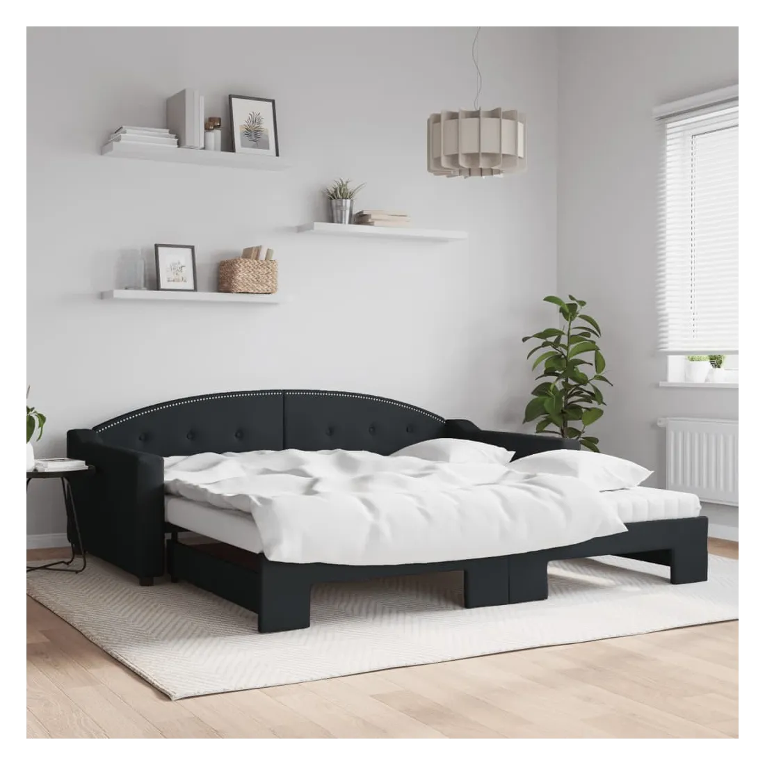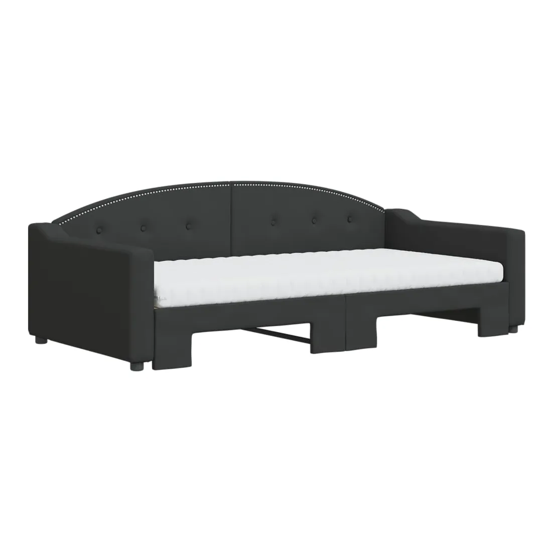Ce lit de repos 2 en 1 avec lit gigogne, servant à la fois de canapé et de lit, constitue un supplément pratique et accrocheur à votre salon ou chambre à coucher. Lit de repos polyvalent : le canapé-lit fonctionne comme un canapé pendant la journée et se transforme facilement en lit double la nuit en retirant le lit gigogne, offrant une solution pratique pour accueillir des invités et maximiser l'espace. Matelas en mousse confortable : ce lit est fourni avec deux matelas en mousse pour un soutien maximal et un confort optimal. Tissu durable et construction solide : ce canapé-lit a une structure robuste en bois et en métal et est recouvert d'un tissu durable et confortable.