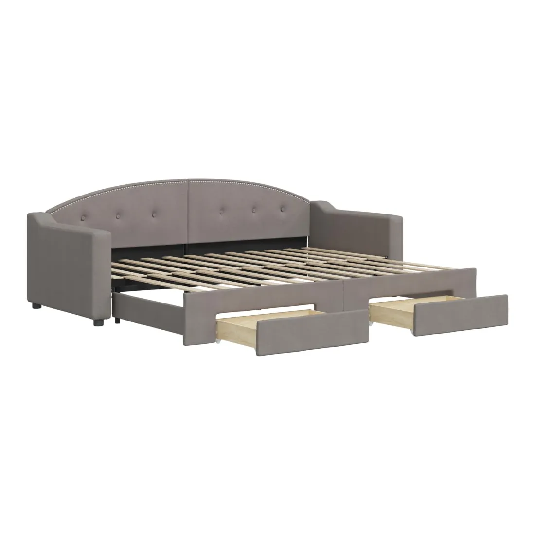 Ce lit de repos 2 en 1 avec lit gigogne, servant à la fois de canapé et de lit, constitue un supplément pratique et accrocheur à votre salon ou chambre à coucher. Lit de repos polyvalent : le canapé-lit fonctionne comme un canapé pendant la journée et se transforme facilement en lit double la nuit en retirant le lit gigogne, offrant une solution pratique pour accueillir des invités et maximiser l'espace. Grand espace de rangement : ce lit d'appoint dispose de deux tiroirs à roulettes qui offrent suffisamment d'espace pour ranger vos vêtements, chaussettes, jouets, coussins, etc. Tissu durable et construction solide : ce canapé-lit a une structure robuste en bois et en métal et est recouvert d'un tissu durable et confortable. Bon à savoir :Les matelas ne sont pas inclus avec ce lit de repos. Nous proposons une sélection variée de matelas. Vous pouvez consulter notre boutique pour les matelas assortis.
