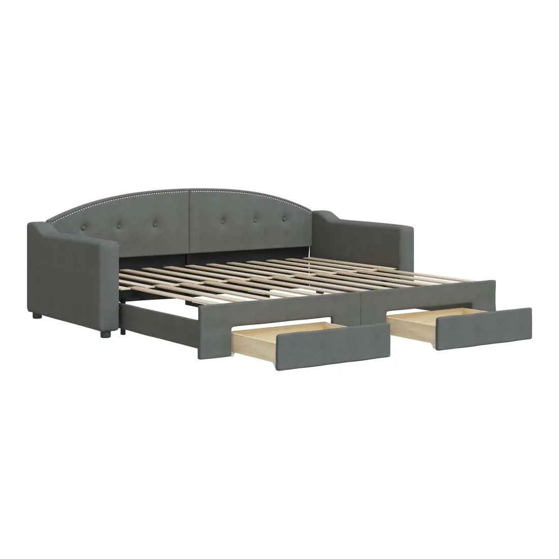 Ce lit de repos 2 en 1 avec lit gigogne, servant à la fois de canapé et de lit, constitue un supplément pratique et accrocheur à votre salon ou chambre à coucher. Lit de repos polyvalent : le canapé-lit fonctionne comme un canapé pendant la journée et se transforme facilement en lit double la nuit en retirant le lit gigogne, offrant une solution pratique pour accueillir des invités et maximiser l'espace. Grand espace de rangement : ce lit d'appoint dispose de deux tiroirs à roulettes qui offrent suffisamment d'espace pour ranger vos vêtements, chaussettes, jouets, coussins, etc. Tissu durable et construction solide : ce canapé-lit a une structure robuste en bois et en métal et est recouvert d'un tissu durable et confortable. Bon à savoir :Les matelas ne sont pas inclus avec ce lit de repos. Nous proposons une sélection variée de matelas. Vous pouvez consulter notre boutique pour les matelas assortis.