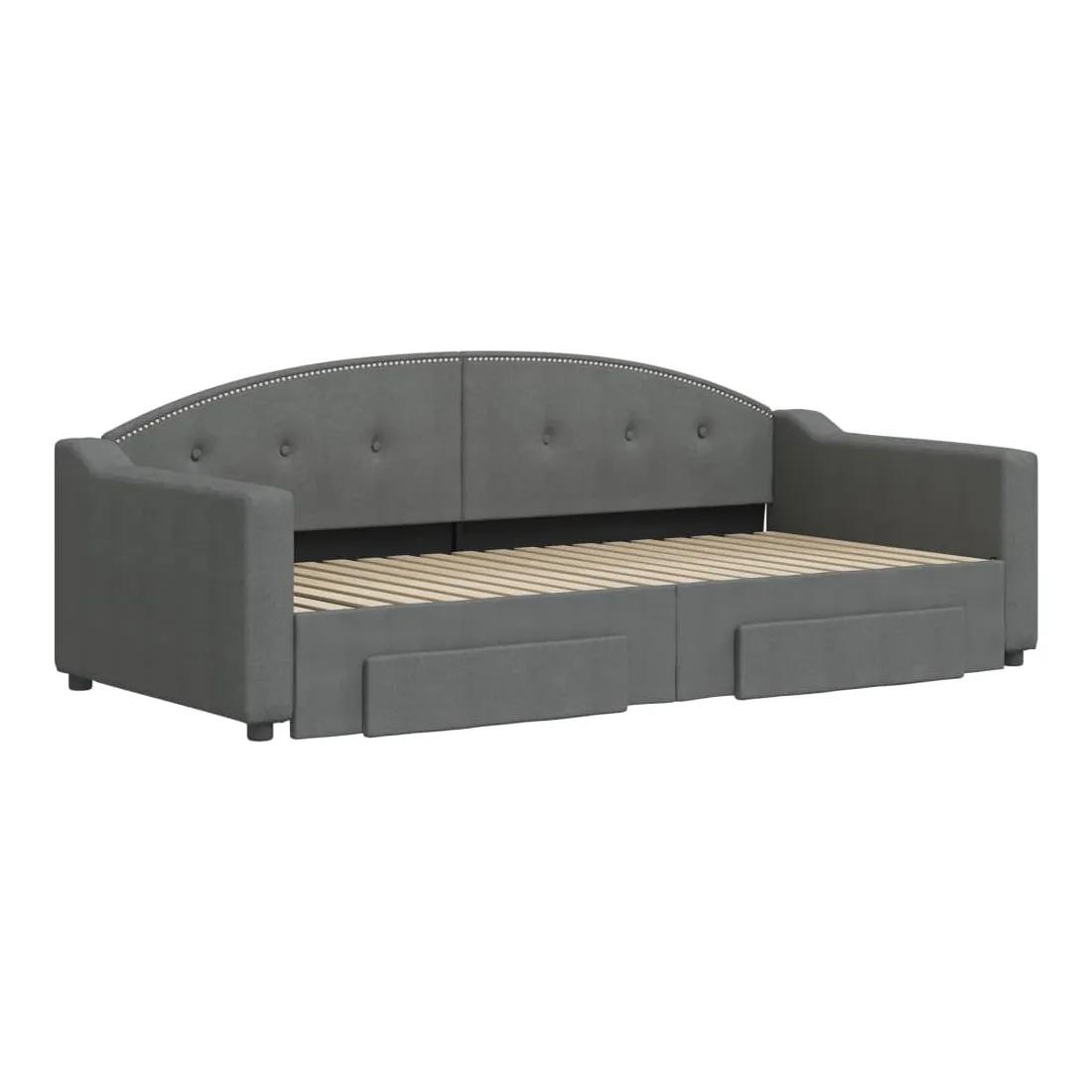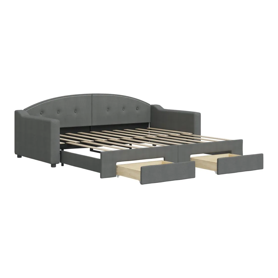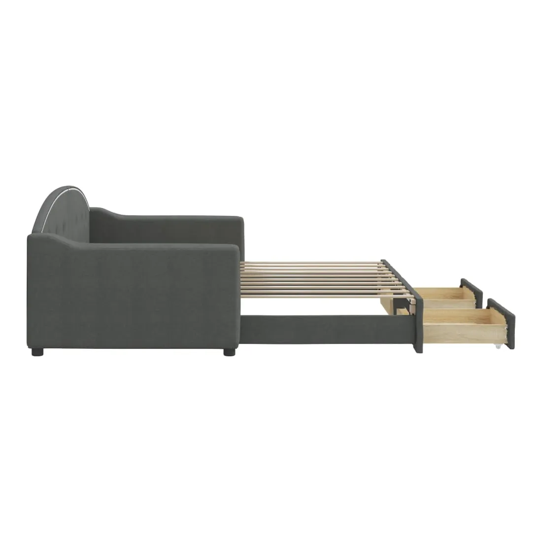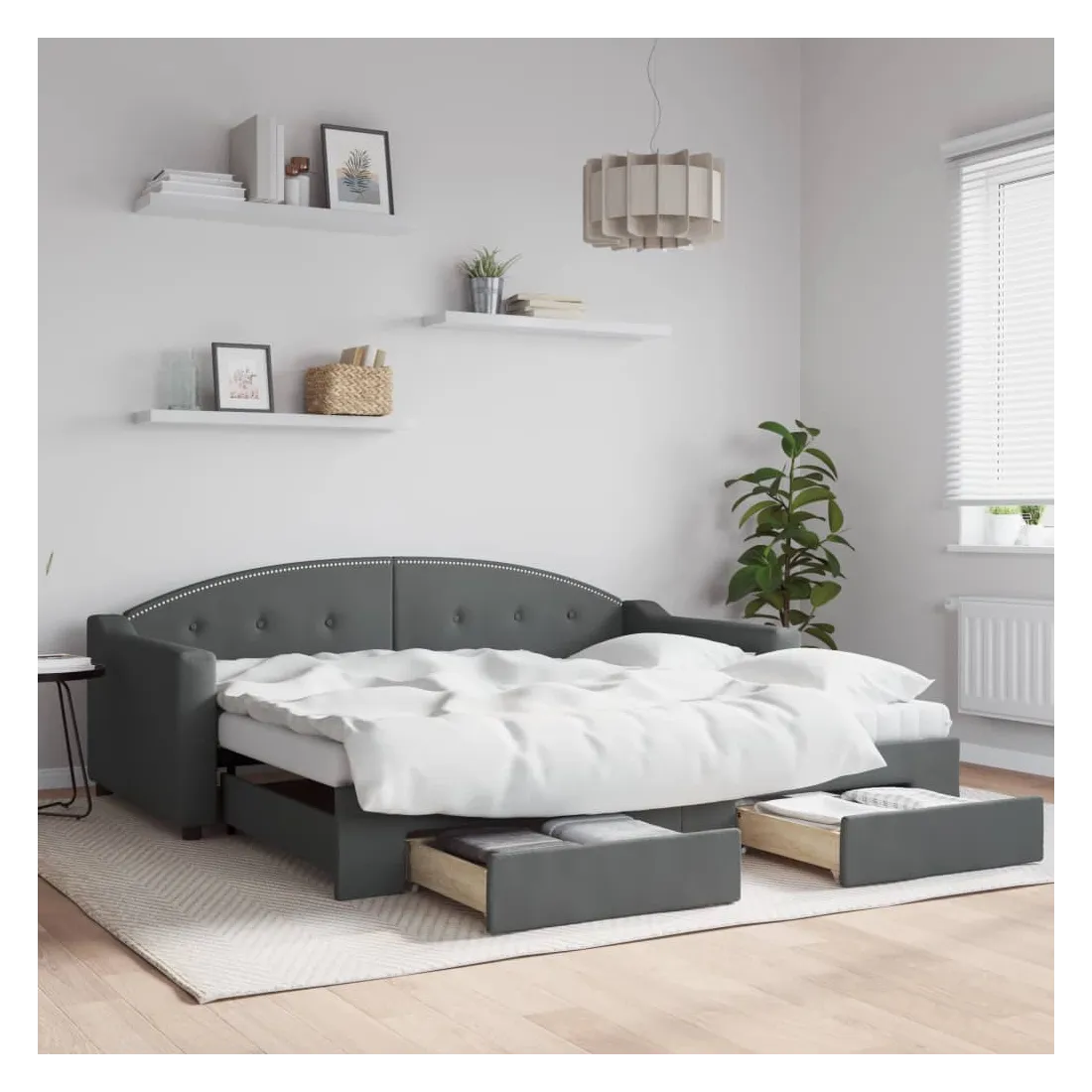 vidaXLCe lit de repos 2 en 1 avec lit gigogne, servant à la fois de canapé et de lit, constitue un supplément pratique et accrocheur à votre salon ou chambre à coucher. Lit de repos polyvalent : le canapé-lit fonctionne comme un canapé pendant la journée et se transforme facilement en lit double la nuit en retirant le lit gigogne, offrant une solution pratique pour accueillir des invités et maximiser l'espace. Grand espace de rangement : ce lit d'appoint dispose de deux tiroirs à roulettes qui offrent suffisamment d'espace pour ranger vos vêtements, chaussettes, jouets, coussins, etc. Tissu durable et construction solide : ce canapé-lit a une structure robuste en bois et en métal et est recouvert d'un tissu durable et confortable. Bon à savoir :Les matelas ne sont pas inclus avec ce lit de repos. Nous proposons une sélection variée de matelas. Vous pouvez consulter notre boutique pour les matelas assortis.