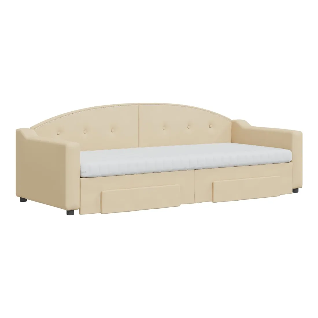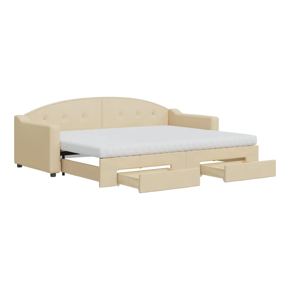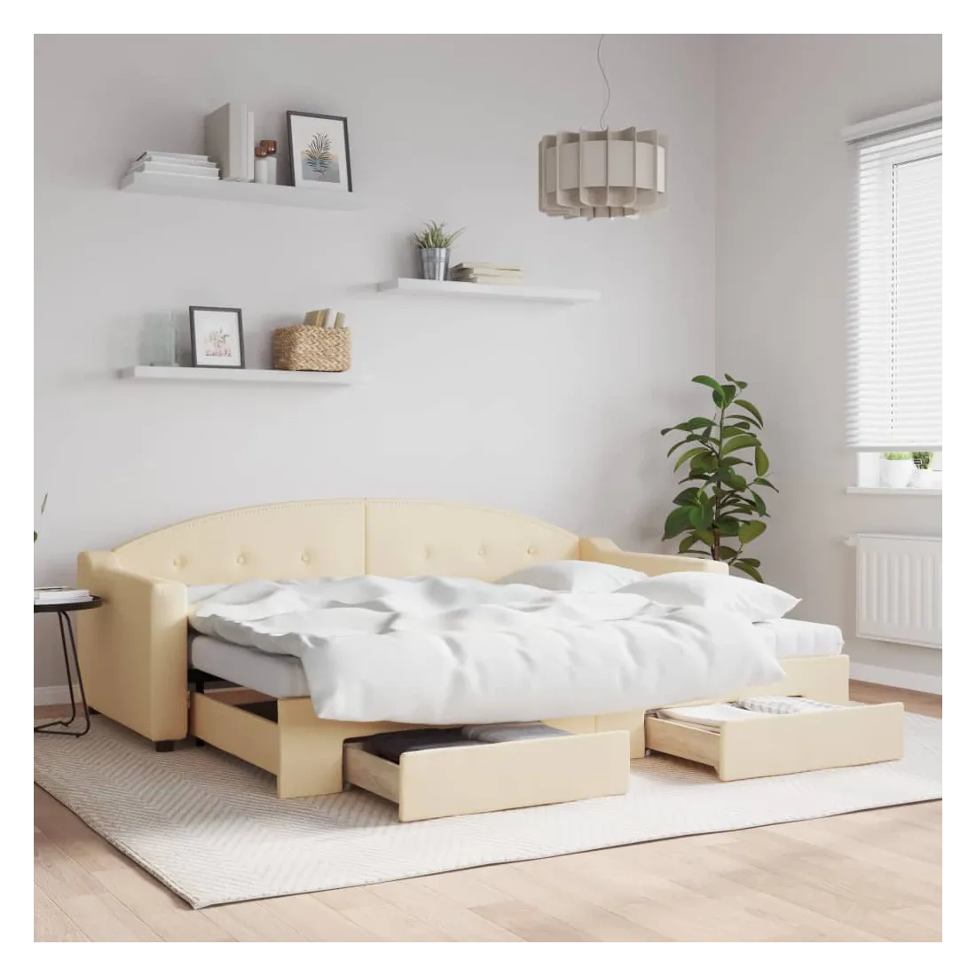 Ce lit de repos 2 en 1 avec lit gigogne, servant à la fois de canapé et de lit, constitue un supplément pratique et accrocheur à votre salon ou chambre à coucher. Lit de repos polyvalent : le canapé-lit fonctionne comme un canapé pendant la journée et se transforme facilement en lit double la nuit en retirant le lit gigogne, offrant une solution pratique pour accueillir des invités et maximiser l'espace. Grand espace de rangement : ce lit d'appoint dispose de deux tiroirs à roulettes qui offrent suffisamment d'espace pour ranger vos vêtements, chaussettes, jouets, coussins, etc. Matelas en mousse confortable : ce lit est fourni avec deux matelas en mousse pour un soutien maximal et un confort optimal. Tissu durable et construction solide : ce canapé-lit a une structure robuste en bois et en métal et est recouvert d'un tissu durable et confortable.