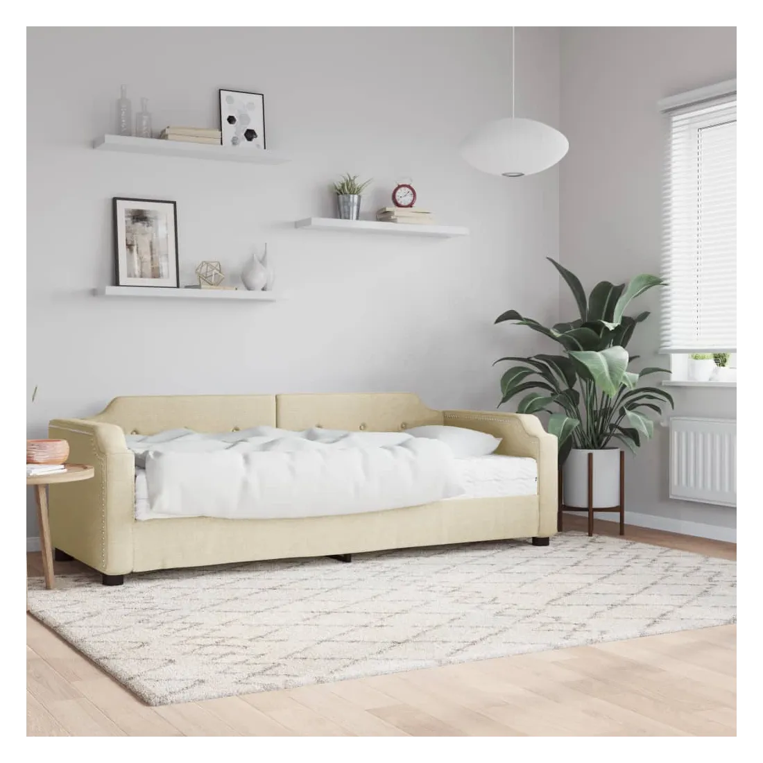 Ce lit de repos 2 en 1 avec matelas, servant à la fois de canapé et de lit, constitue un supplément pratique et accrocheur à votre salon ou votre chambre à coucher. Lit de repos polyvalent : le canapé-lit fonctionne comme un canapé pendant la journée et se transforme facilement en lit la nuit, offrant une solution pratique pour accueillir des invités et maximiser l'espace. Matelas en mousse confortable : ce lit est fourni avec un matelas en mousse pour un soutien maximal et un confort optimal. Tissu durable et construction solide : ce canapé-lit a une structure robuste en bois et en métal et est recouvert d'un tissu durable et confortable.