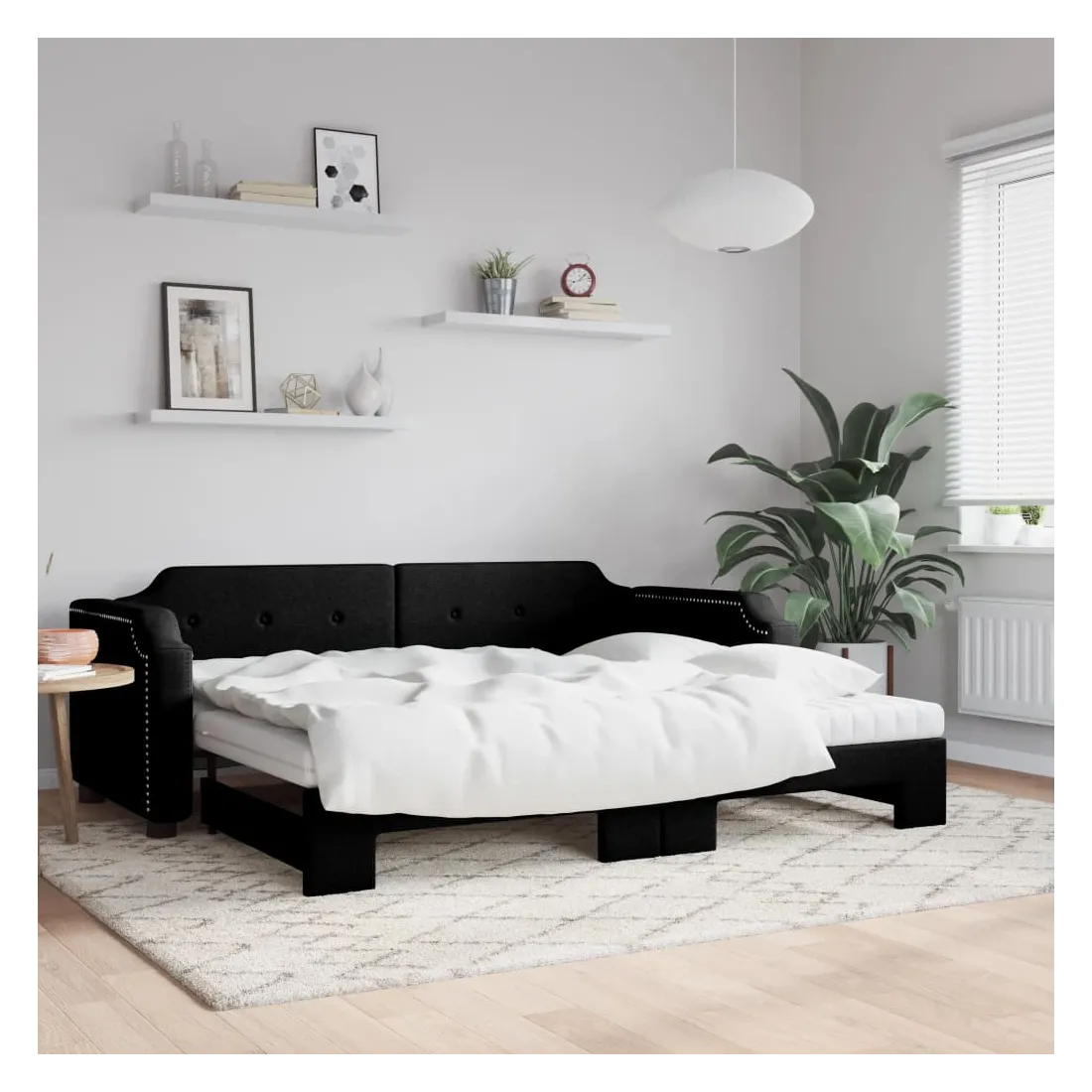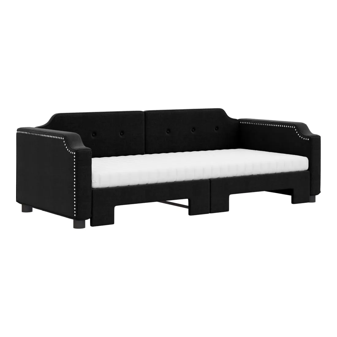 Ce lit de repos 2 en 1 avec lit gigogne, servant à la fois de canapé et de lit, constitue un supplément pratique et accrocheur à votre salon ou chambre à coucher. Lit de repos polyvalent : le canapé-lit fonctionne comme un canapé pendant la journée et se transforme facilement en lit double la nuit en retirant le lit gigogne, offrant une solution pratique pour accueillir des invités et maximiser l'espace. Matelas en mousse confortable : ce lit est fourni avec deux matelas en mousse pour un soutien maximal et un confort optimal. Tissu durable et construction solide : ce canapé-lit a une structure robuste en bois et en métal et est recouvert d'un tissu durable et confortable.