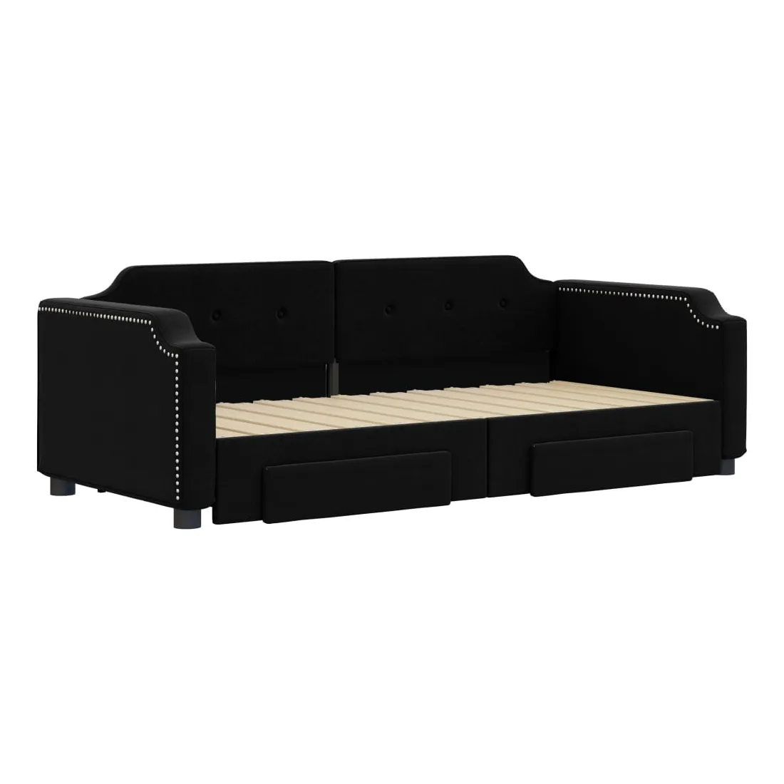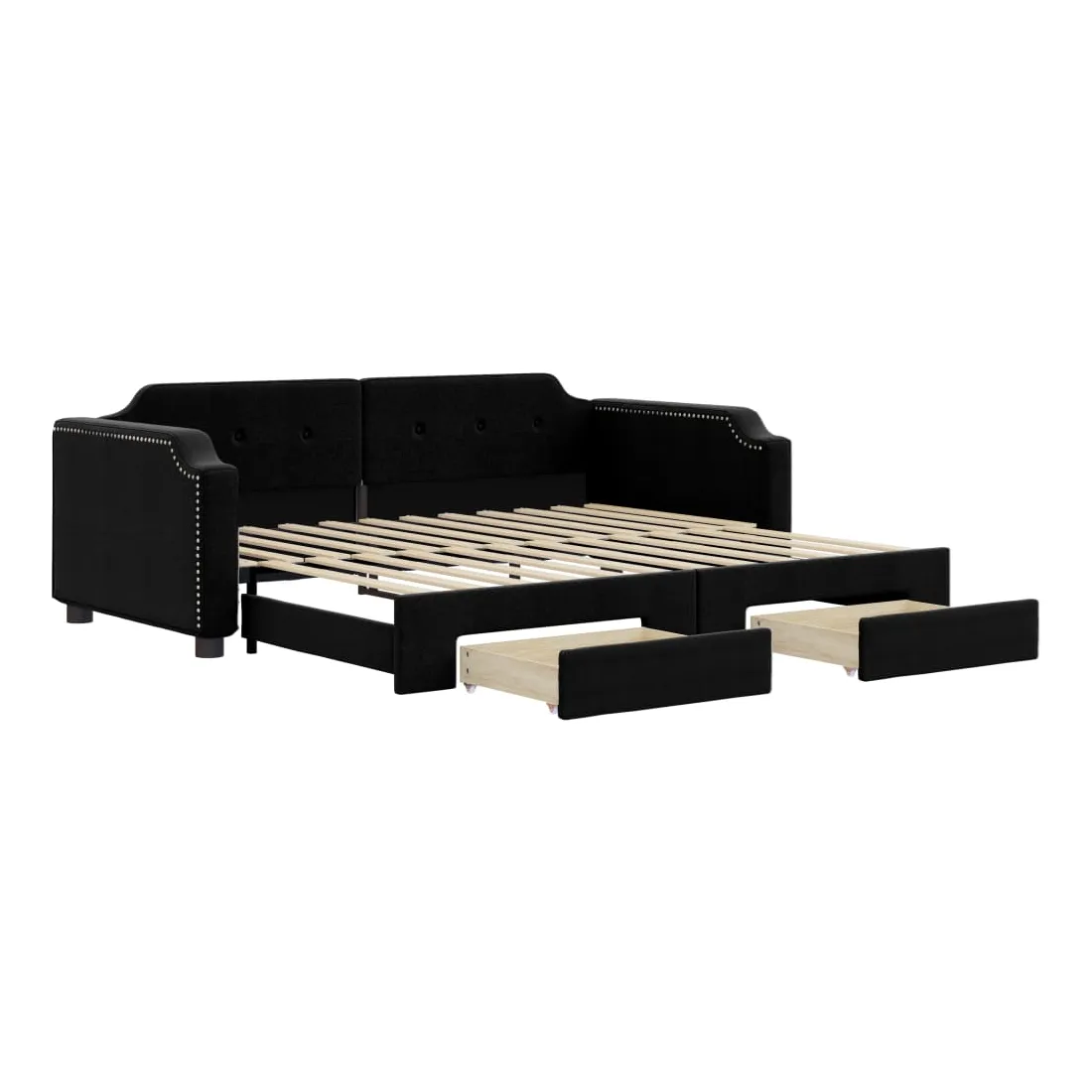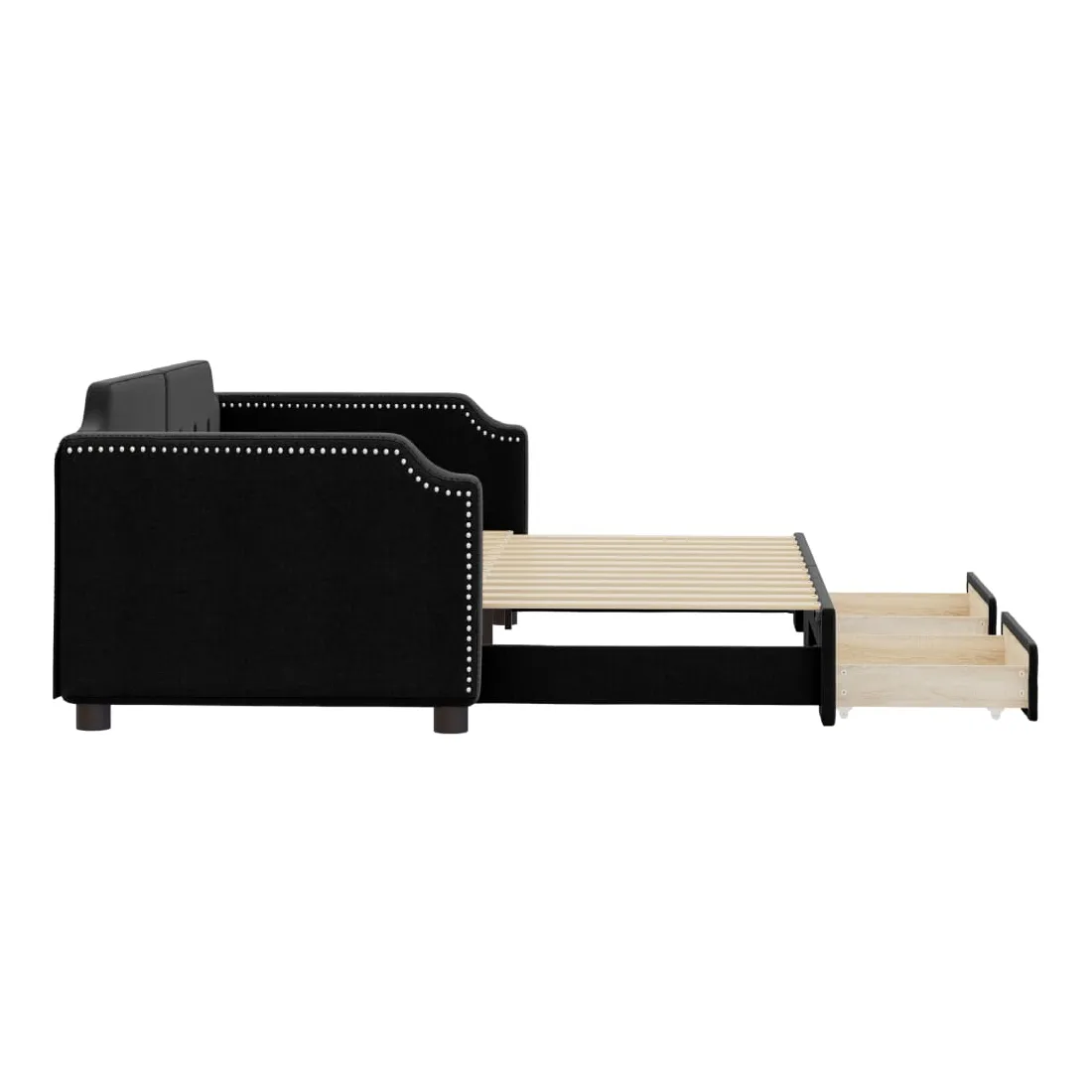 Ce lit de repos 2 en 1 avec lit gigogne, servant à la fois de canapé et de lit, constitue un supplément pratique et accrocheur à votre salon ou chambre à coucher. Lit de repos polyvalent : le canapé-lit fonctionne comme un canapé pendant la journée et se transforme facilement en lit double la nuit en retirant le lit gigogne, offrant une solution pratique pour accueillir des invités et maximiser l'espace. Grand espace de rangement : ce lit d'appoint dispose de deux tiroirs à roulettes qui offrent suffisamment d'espace pour ranger vos vêtements, chaussettes, jouets, coussins, etc. Tissu durable et construction solide : ce canapé-lit a une structure robuste en bois et en métal et est recouvert d'un tissu durable et confortable. Bon à savoir :Les matelas ne sont pas inclus avec ce lit de repos. Nous proposons une sélection variée de matelas. Vous pouvez consulter notre boutique pour les matelas assortis.