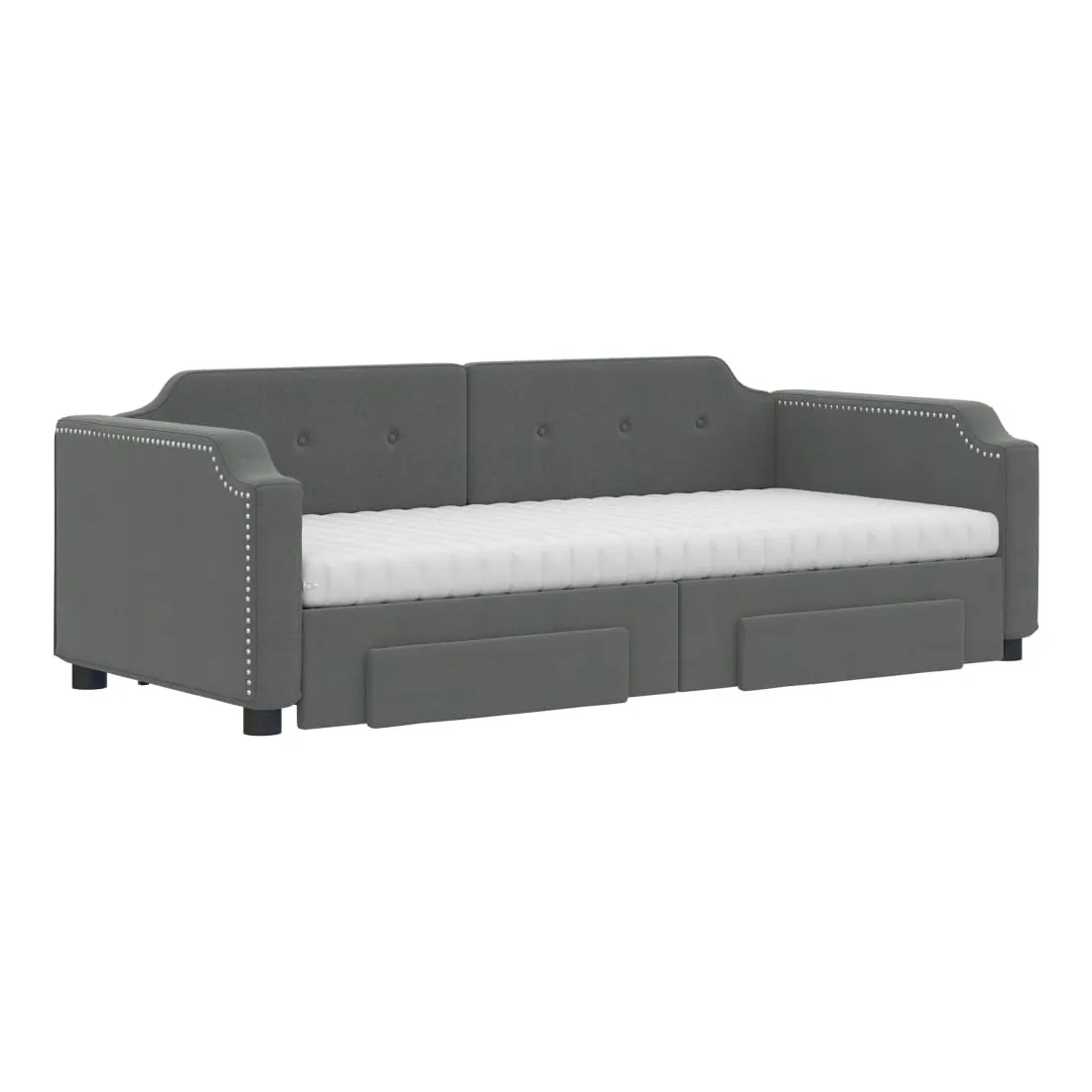 Ce lit de repos 2 en 1 avec lit gigogne, servant à la fois de canapé et de lit, constitue un supplément pratique et accrocheur à votre salon ou chambre à coucher. Lit de repos polyvalent : le canapé-lit fonctionne comme un canapé pendant la journée et se transforme facilement en lit double la nuit en retirant le lit gigogne, offrant une solution pratique pour accueillir des invités et maximiser l'espace. Grand espace de rangement : ce lit d'appoint dispose de deux tiroirs à roulettes qui offrent suffisamment d'espace pour ranger vos vêtements, chaussettes, jouets, coussins, etc. Matelas en mousse confortable : ce lit est fourni avec deux matelas en mousse pour un soutien maximal et un confort optimal. Tissu durable et construction solide : ce canapé-lit a une structure robuste en bois et en métal et est recouvert d'un tissu durable et confortable.