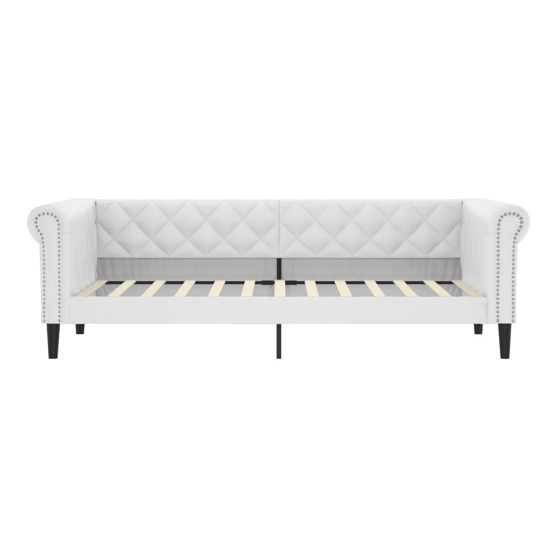 Ce lit de repos 2 en 1 avec matelas, servant à la fois de canapé et de lit, constitue un supplément pratique et accrocheur à votre salon ou votre chambre à coucher. Lit de jour polyvalent : le canapé-lit peut être utilisé comme canapé pendant la journée, ou comme lit pendant la nuit pour offrir une solution rapide pour accueillir des invités pour la nuit.Matelas en mousse confortable : ce lit est fourni avec un matelas en mousse pour un soutien maximal et un confort optimal.Similicuir durable et construction solide : ce canapé-lit a une structure robuste en bois et en métal et est recouvert d'un similicuir durable et facile à nettoyer.Design moderne : le canapé-lit a un design moderne qui présente des lignes épurées, un aspect minimaliste, ainsi que de la lumière naturelle, et ajoutera un style moderne à votre intérieur !
