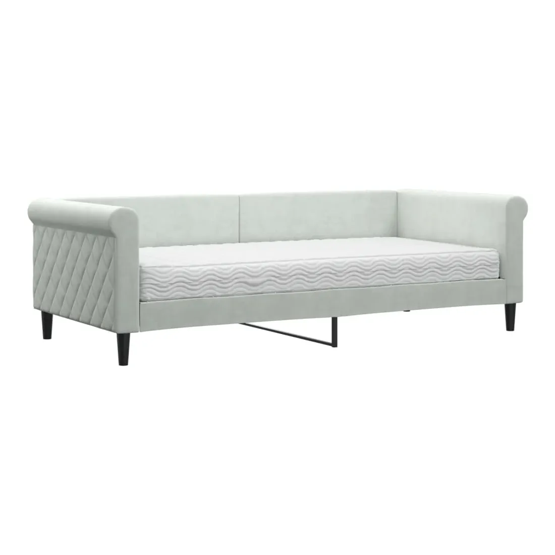 Ce lit de repos 2 en 1 avec matelas, servant à la fois de canapé et de lit, constitue un supplément pratique et accrocheur à votre salon ou votre chambre à coucher. Lit de jour polyvalent : le canapé-lit peut être utilisé comme canapé pendant la journée, ou comme lit pendant la nuit pour offrir une solution rapide pour accueillir des invités pour la nuit.Matelas en mousse confortable : ce lit est fourni avec un matelas en mousse pour un soutien maximal et un confort optimal.Velours doux et construction solide : ce canapé-lit a un cadre robuste en bois et en métal et est recouvert de velours doux et confortable.Design moderne : le canapé-lit a un design moderne qui présente des lignes épurées, un aspect minimaliste, ainsi que de la lumière naturelle, et ajoutera un style moderne à votre intérieur !