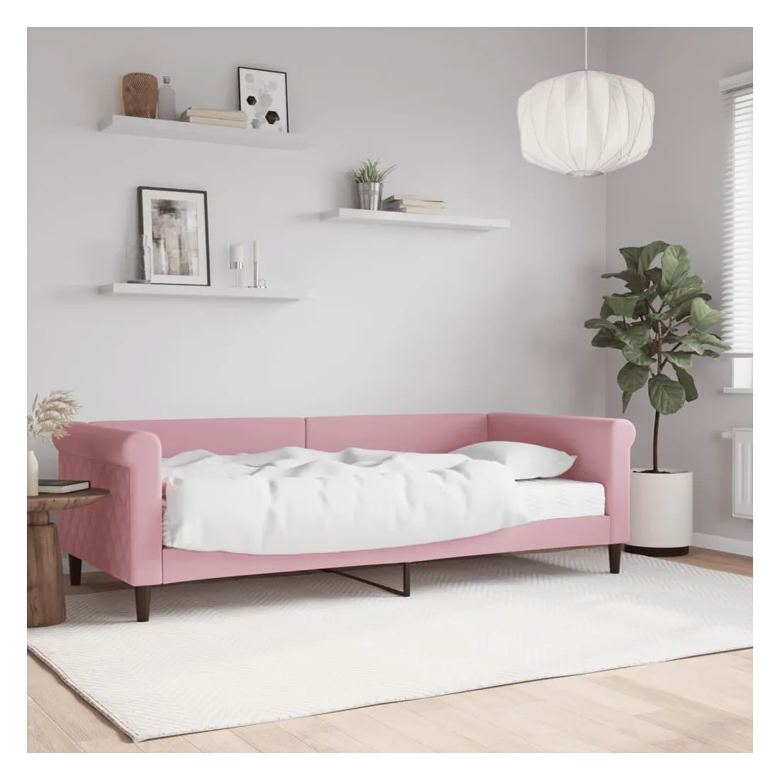Ce lit de repos 2 en 1 avec matelas, servant à la fois de canapé et de lit, constitue un supplément pratique et accrocheur à votre salon ou votre chambre à coucher. Lit de jour polyvalent : le canapé-lit peut être utilisé comme canapé pendant la journée, ou comme lit pendant la nuit pour offrir une solution rapide pour accueillir des invités pour la nuit.Matelas en mousse confortable : ce lit est fourni avec un matelas en mousse pour un soutien maximal et un confort optimal.Velours doux et construction solide : ce canapé-lit a un cadre robuste en bois et en métal et est recouvert de velours doux et confortable.Design moderne : le canapé-lit a un design moderne qui présente des lignes épurées, un aspect minimaliste, ainsi que de la lumière naturelle, et ajoutera un style moderne à votre intérieur !