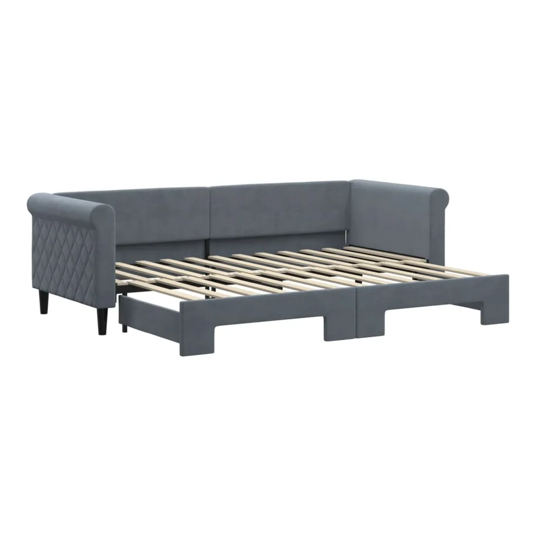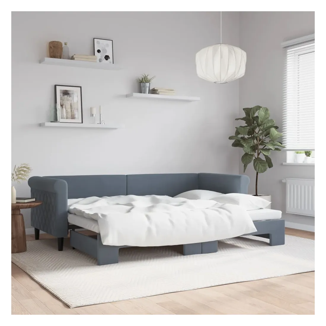 Ce lit de repos 2 en 1 avec lit gigogne, servant à la fois de canapé et de lit, constitue un supplément pratique et accrocheur à votre salon ou chambre à coucher. Lit de repos polyvalent : le canapé-lit fonctionne comme un canapé pendant la journée et se transforme facilement en lit double la nuit en retirant le lit gigogne, offrant une solution pratique pour accueillir des invités et maximiser l'espace.Velours doux et construction solide : ce canapé-lit a un cadre robuste en bois et en métal et est recouvert de velours doux et confortable.Design moderne : le canapé-lit a un design moderne qui présente des lignes épurées, un aspect minimaliste, ainsi que de la lumière naturelle, et ajoutera un style moderne à votre intérieur ! Bon à savoir :Les matelas ne sont pas inclus avec ce lit. Nous proposons une sélection variée de matelas. Vous pouvez consulter notre boutique pour trouver les matelas assortis.