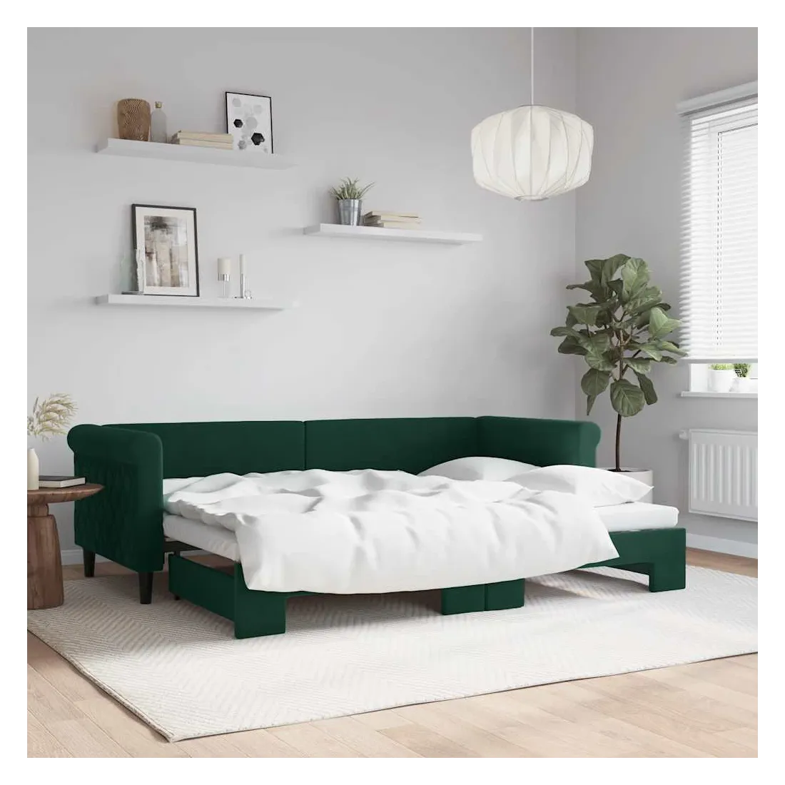 Ce lit de repos 2 en 1 avec lit gigogne, servant à la fois de canapé et de lit, constitue un supplément pratique et accrocheur à votre salon ou chambre à coucher. Lit de repos polyvalent : le canapé-lit fonctionne comme un canapé pendant la journée et se transforme facilement en lit double la nuit en retirant le lit gigogne, offrant une solution pratique pour accueillir des invités et maximiser l'espace.Velours doux et construction solide : ce canapé-lit a un cadre robuste en bois et en métal et est recouvert de velours doux et confortable.Design moderne : le canapé-lit a un design moderne qui présente des lignes épurées, un aspect minimaliste, ainsi que de la lumière naturelle, et ajoutera un style moderne à votre intérieur ! Bon à savoir :Les matelas ne sont pas inclus avec ce lit. Nous proposons une sélection variée de matelas. Vous pouvez consulter notre boutique pour trouver les matelas assortis.