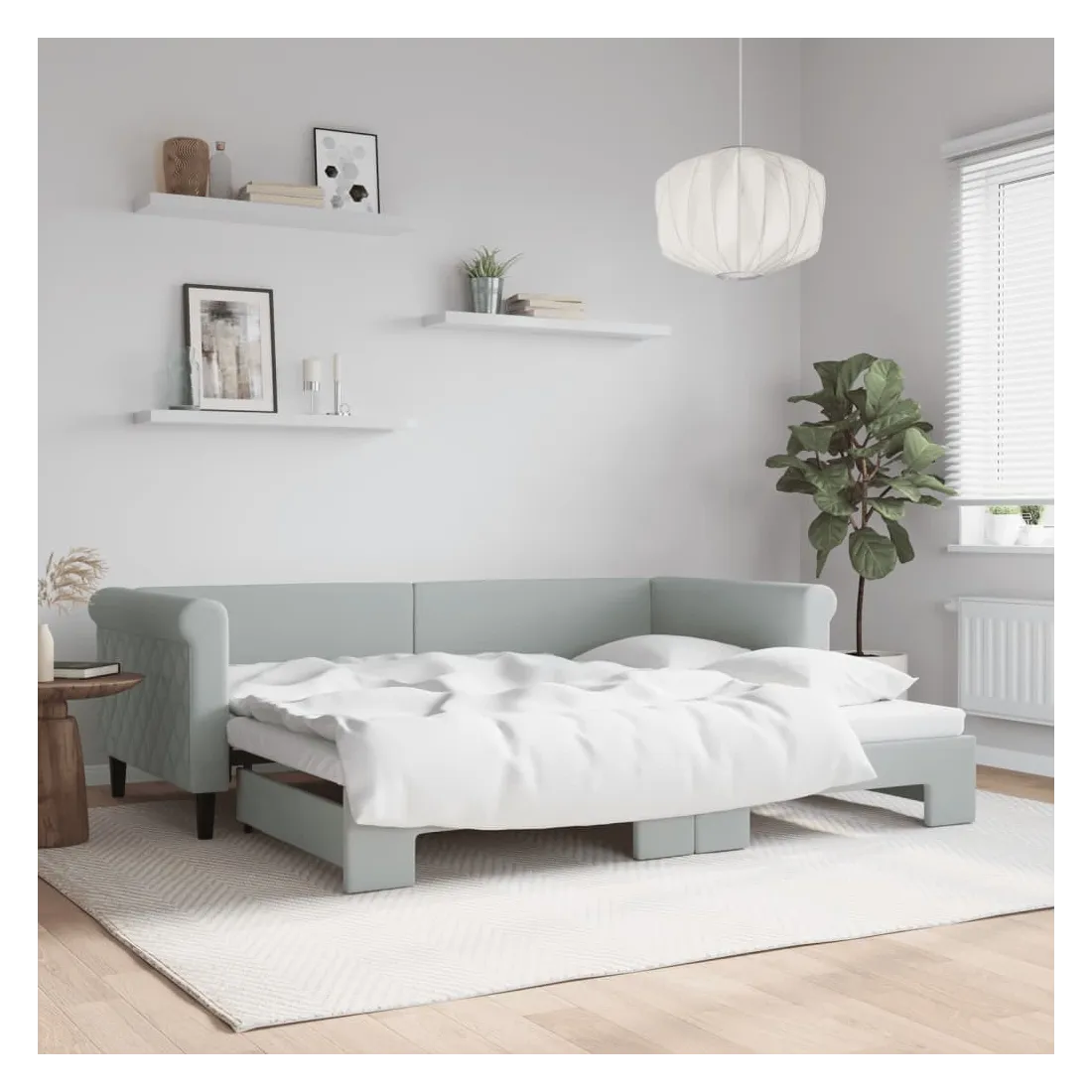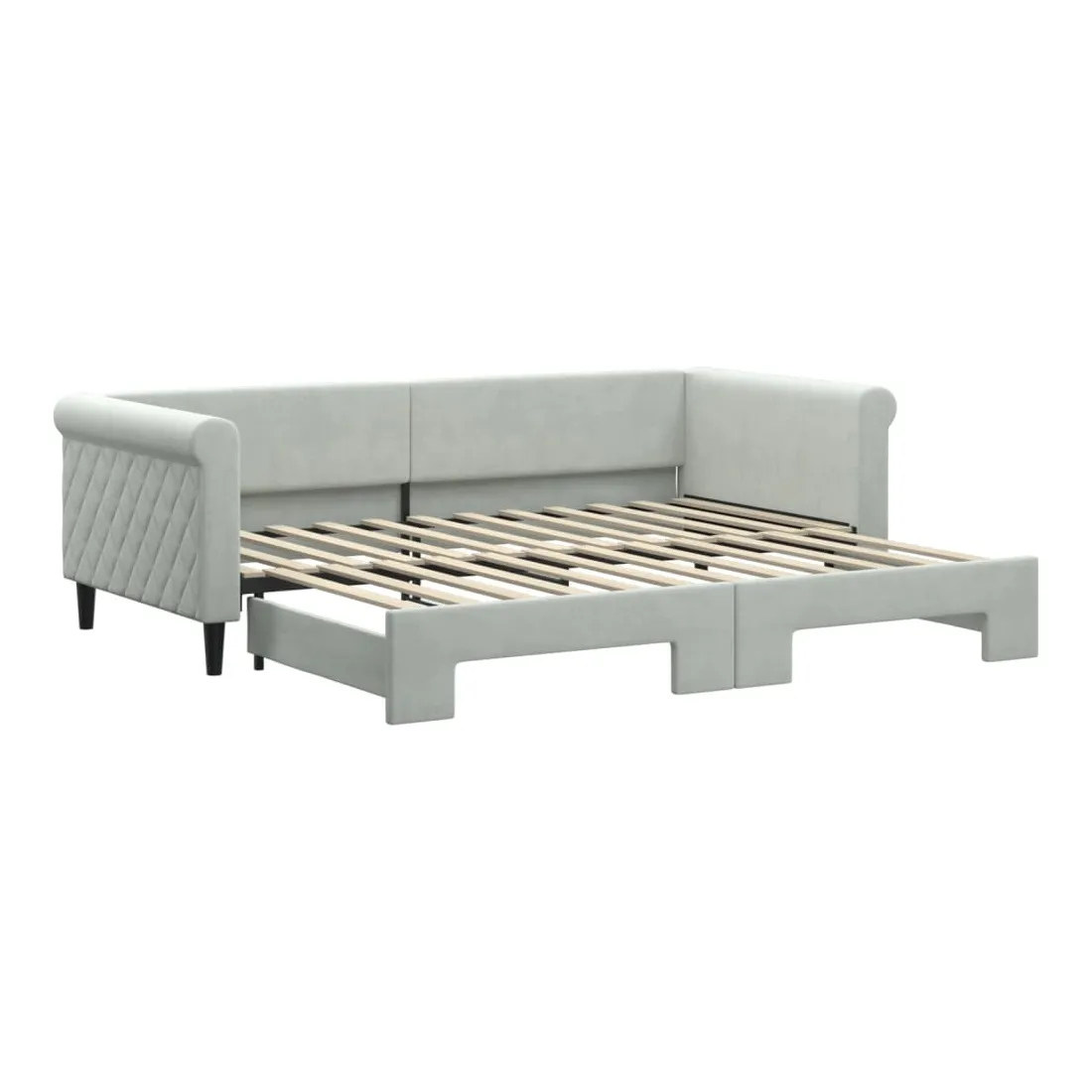 Ce lit de repos 2 en 1 avec lit gigogne, servant à la fois de canapé et de lit, constitue un supplément pratique et accrocheur à votre salon ou chambre à coucher. Lit de repos polyvalent : le canapé-lit fonctionne comme un canapé pendant la journée et se transforme facilement en lit double la nuit en retirant le lit gigogne, offrant une solution pratique pour accueillir des invités et maximiser l'espace.Velours doux et construction solide : ce canapé-lit a un cadre robuste en bois et en métal et est recouvert de velours doux et confortable.Design moderne : le canapé-lit a un design moderne qui présente des lignes épurées, un aspect minimaliste, ainsi que de la lumière naturelle, et ajoutera un style moderne à votre intérieur ! Bon à savoir :Les matelas ne sont pas inclus avec ce lit. Nous proposons une sélection variée de matelas. Vous pouvez consulter notre boutique pour trouver les matelas assortis.