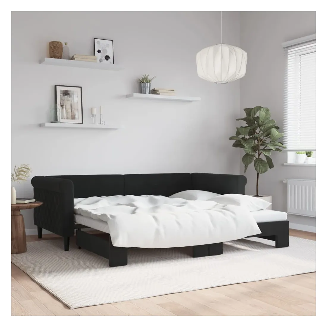 Ce lit de repos 2 en 1 avec lit gigogne, servant à la fois de canapé et de lit, constitue un supplément pratique et accrocheur à votre salon ou chambre à coucher. Lit de repos polyvalent : le canapé-lit fonctionne comme un canapé pendant la journée et se transforme facilement en lit double la nuit en retirant le lit gigogne, offrant une solution pratique pour accueillir des invités et maximiser l'espace.Velours doux et construction solide : ce canapé-lit a un cadre robuste en bois et en métal et est recouvert de velours doux et confortable.Design moderne : le canapé-lit a un design moderne qui présente des lignes épurées, un aspect minimaliste, ainsi que de la lumière naturelle, et ajoutera un style moderne à votre intérieur ! Bon à savoir :Les matelas ne sont pas inclus avec ce lit. Nous proposons une sélection variée de matelas. Vous pouvez consulter notre boutique pour trouver les matelas assortis.