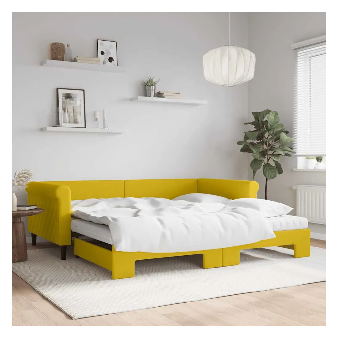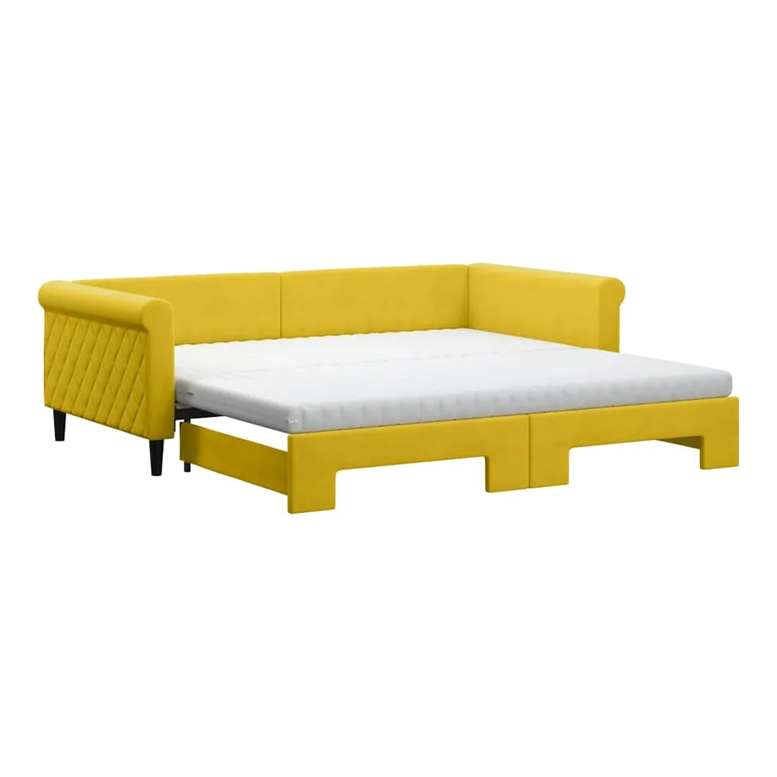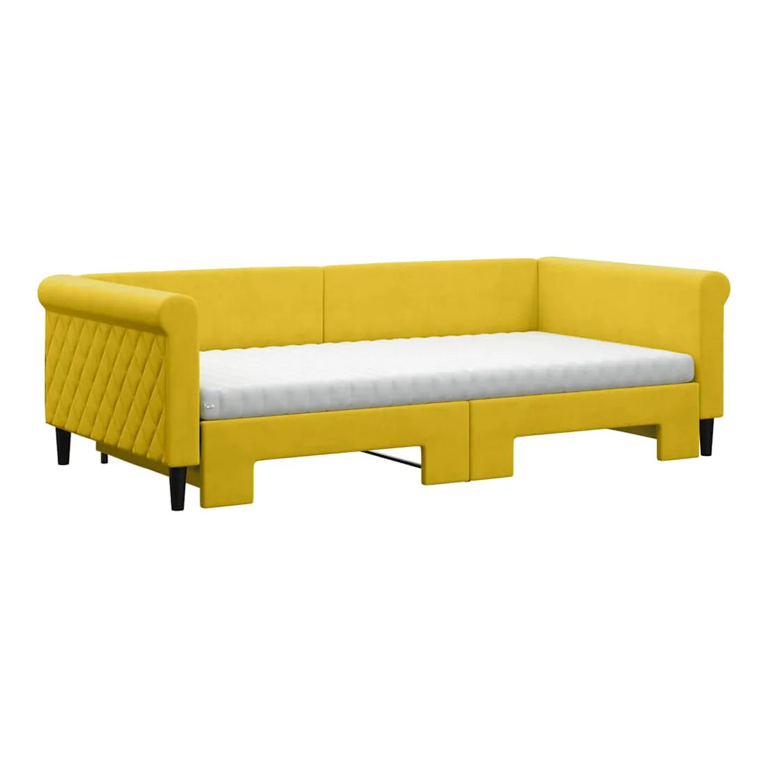 Lit de jour avec gigogne et matelas jaune 100x200 cm velours