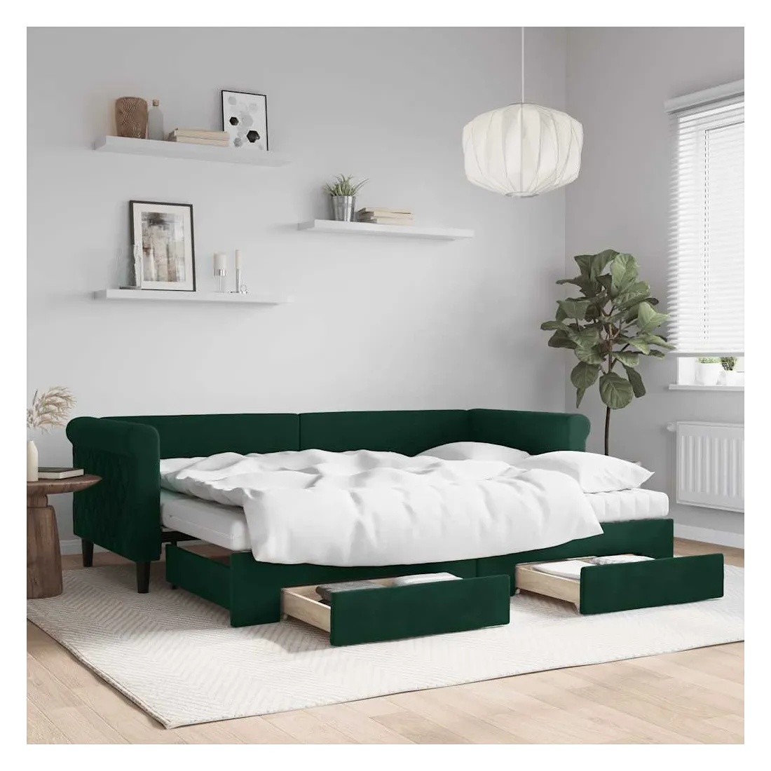 Ce lit de repos 2 en 1 avec lit gigogne, servant à la fois de canapé et de lit, constitue un supplément pratique et accrocheur à votre salon ou chambre à coucher. Lit de repos polyvalent : le canapé-lit fonctionne comme un canapé pendant la journée et se transforme facilement en lit double la nuit en retirant le lit gigogne, offrant une solution pratique pour accueillir des invités et maximiser l'espace.Grand espace de rangement : ce lit d'appoint dispose de deux tiroirs à roulettes qui offrent suffisamment d'espace pour ranger vos vêtements, chaussettes, jouets, coussins, etc.Matelas en mousse confortable : ce lit est fourni avec deux matelas en mousse pour un soutien maximal et un confort optimal.Velours doux et construction solide : ce canapé-lit a un cadre robuste en bois et en métal et est recouvert de velours doux et confortable.