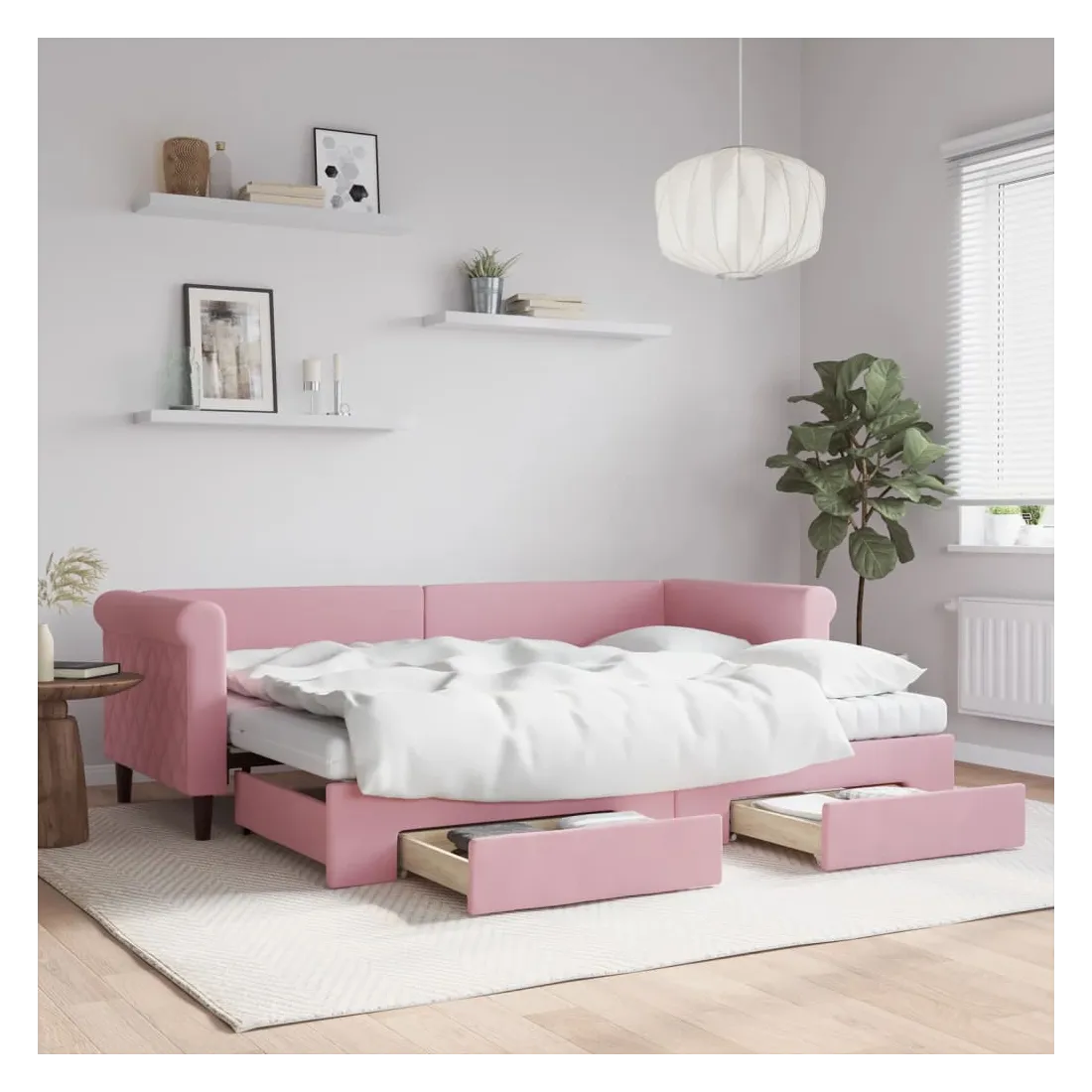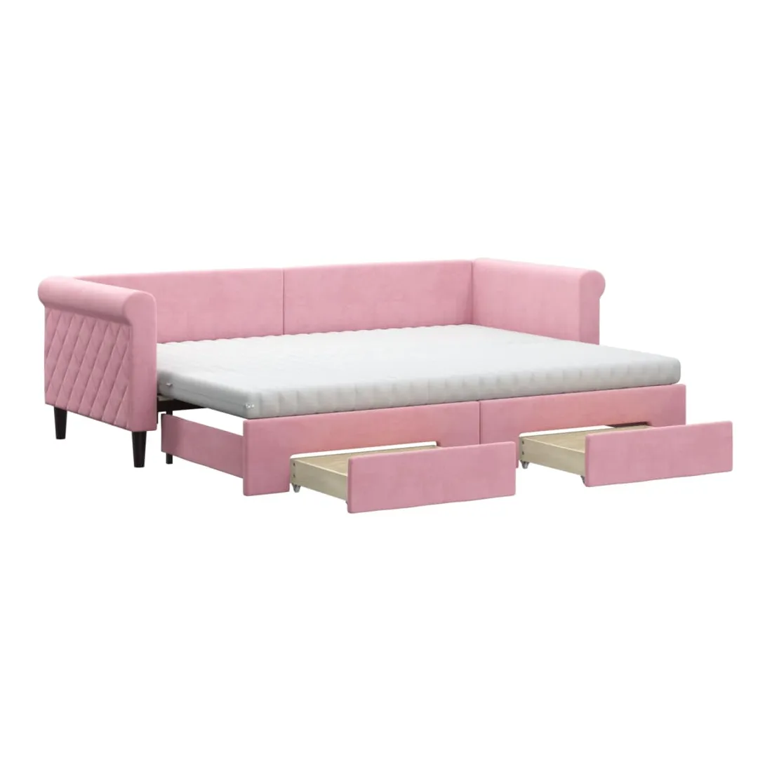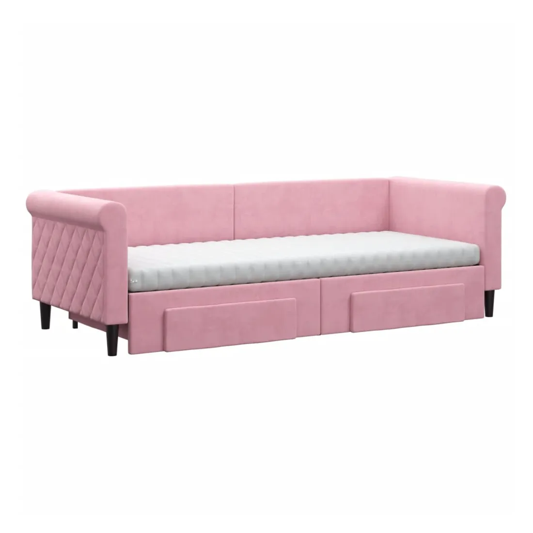 Lit de jour avec gigogne et tiroirs rose 80x200 cm velours