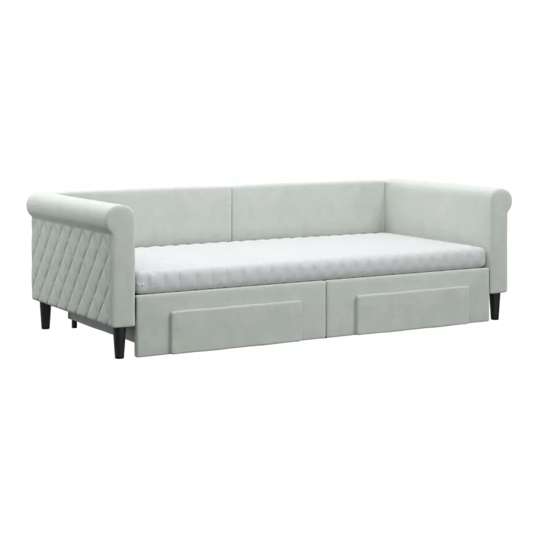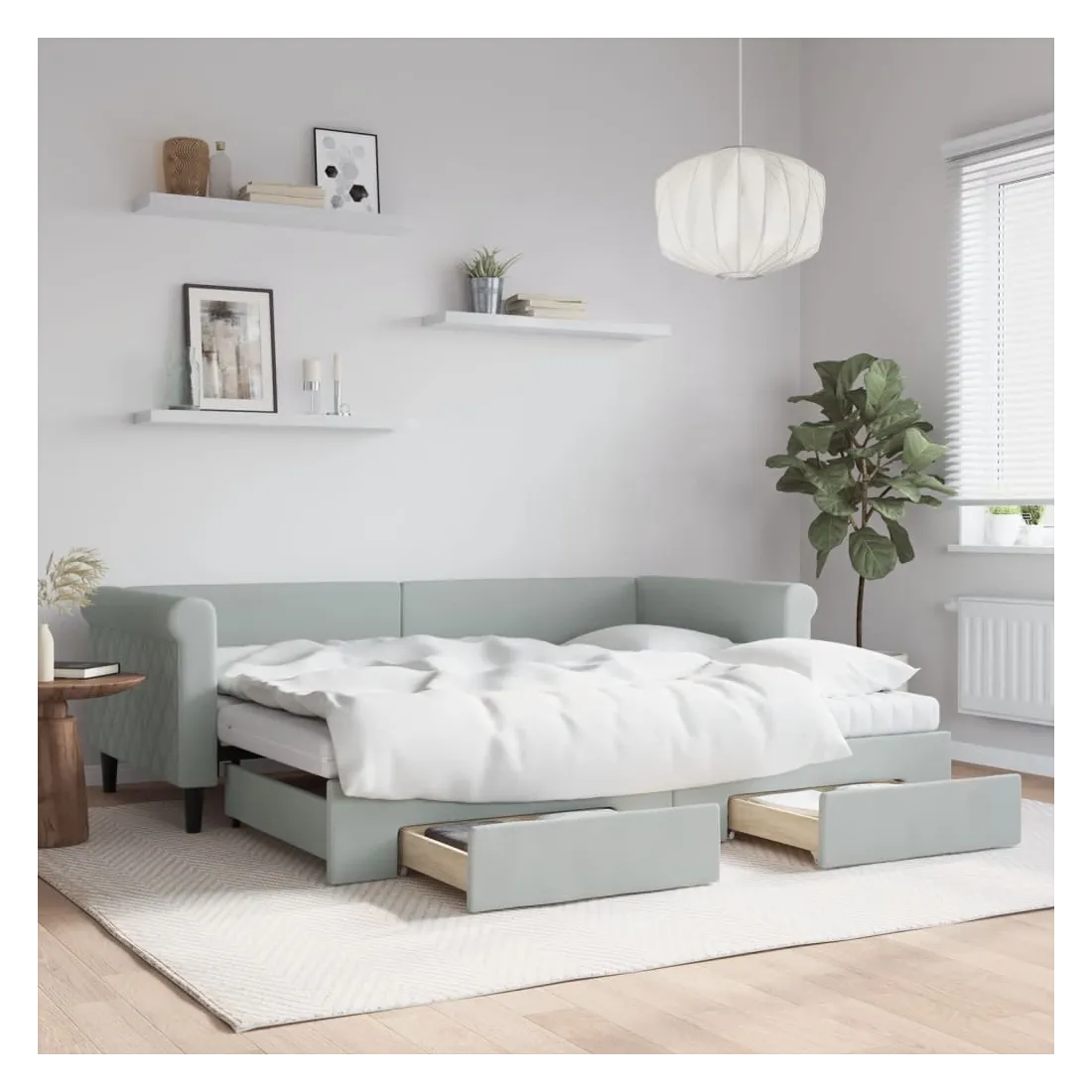 Ce lit de repos 2 en 1 avec lit gigogne, servant à la fois de canapé et de lit, constitue un supplément pratique et accrocheur à votre salon ou chambre à coucher. Lit de repos polyvalent : le canapé-lit fonctionne comme un canapé pendant la journée et se transforme facilement en lit double la nuit en retirant le lit gigogne, offrant une solution pratique pour accueillir des invités et maximiser l'espace.Grand espace de rangement : ce lit d'appoint dispose de deux tiroirs à roulettes qui offrent suffisamment d'espace pour ranger vos vêtements, chaussettes, jouets, coussins, etc.Matelas en mousse confortable : ce lit est fourni avec deux matelas en mousse pour un soutien maximal et un confort optimal.Velours doux et construction solide : ce canapé-lit a un cadre robuste en bois et en métal et est recouvert de velours doux et confortable.
