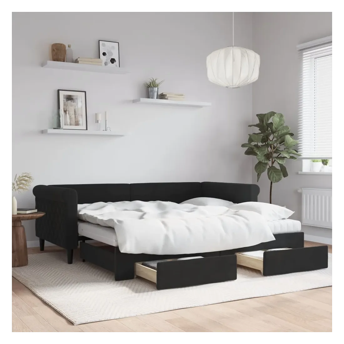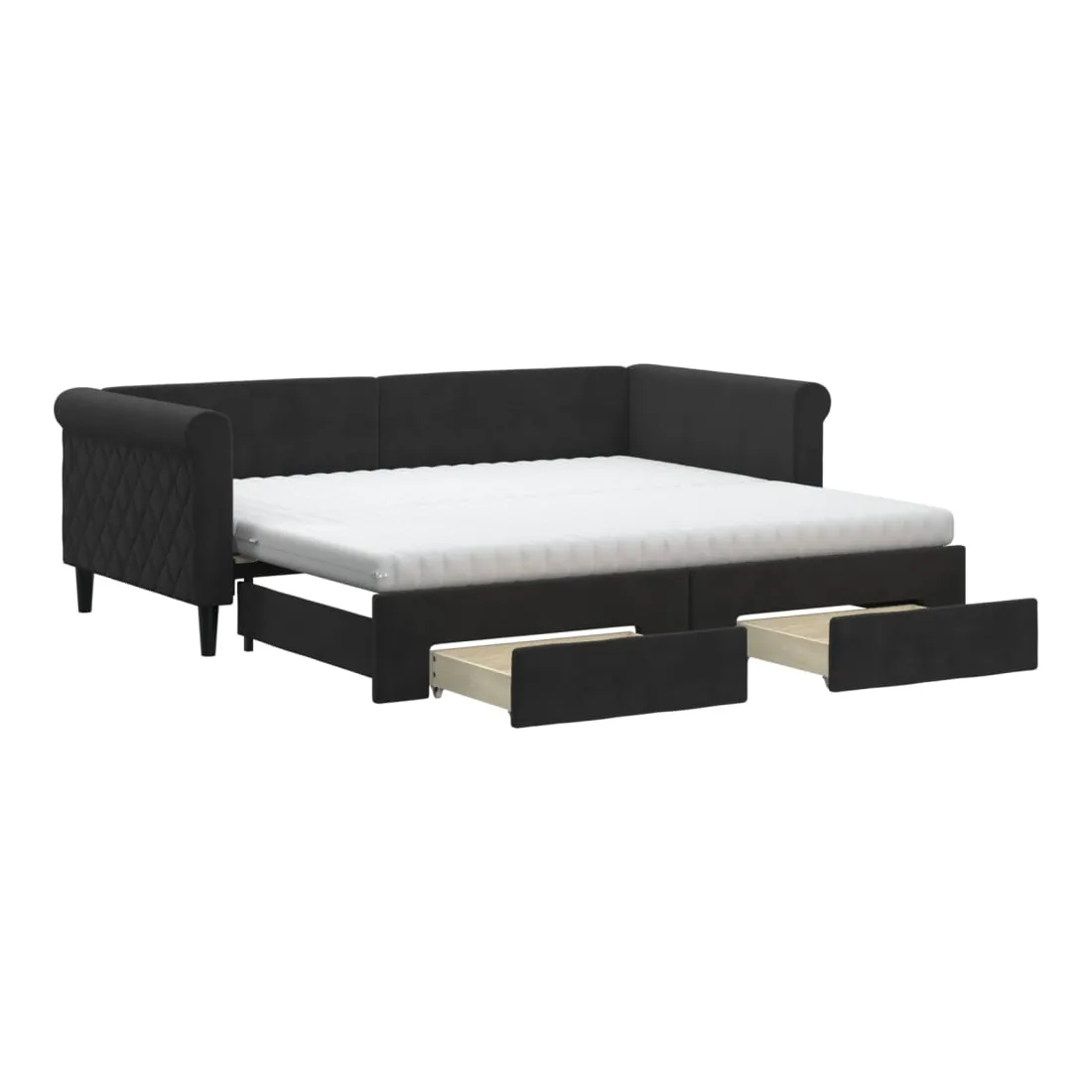 Ce lit de repos 2 en 1 avec lit gigogne, servant à la fois de canapé et de lit, constitue un supplément pratique et accrocheur à votre salon ou chambre à coucher. Lit de repos polyvalent : le canapé-lit fonctionne comme un canapé pendant la journée et se transforme facilement en lit double la nuit en retirant le lit gigogne, offrant une solution pratique pour accueillir des invités et maximiser l'espace.Grand espace de rangement : ce lit d'appoint dispose de deux tiroirs à roulettes qui offrent suffisamment d'espace pour ranger vos vêtements, chaussettes, jouets, coussins, etc.Matelas en mousse confortable : ce lit est fourni avec deux matelas en mousse pour un soutien maximal et un confort optimal.Velours doux et construction solide : ce canapé-lit a un cadre robuste en bois et en métal et est recouvert de velours doux et confortable.