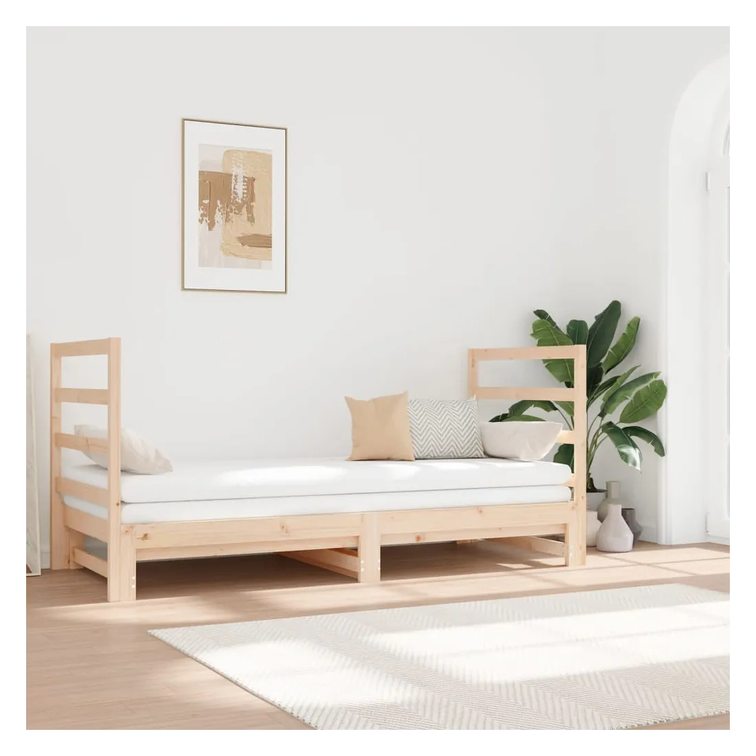Ce lit de jour en bois polyvalent peut être utilisé comme lit dans votre chambre à coucher et s'intègre également parfaitement comme canapé dans votre salon. Bois de pin massif : le bois de pin massif est un matériau naturel magnifique. Le bois de pin a un grain droit et les nœuds donnent au matériau son aspect caractéristique et rustique. Ce lit d'appoint est en bois de pin massif, plus stable et durable.Design à lattes : le sommier à lattes permet une meilleure circulation de l'air pour garder le matelas frais plus longtemps, améliorant la capacité de poids du lit et assurant la stabilité.Utilisation facile : ce lit est très pratique à utiliser et ne nécessite pas de sommier ni de cadre. Placez simplement le matelas sur le dessus et profitez d'un sommeil réparateur ou d'un temps assis !Canapé-lit coulissant : ce lit de jour en bois peut être utilisé comme canapé pendant la journée ou comme lit la nuit, offrant une solution rapide pour accueillir des invités pour la nuit tout en économisant de l'espace.Soutien confortable : cette tête de lit vous offre un excellent soutien dorsal lorsque vous êtes assis au lit pour lire ou regarder des films. Bon à savoir :La livraison comprend uniquement un cadre de lit de jour. Le matelas n'est pas inclus. Vous pouvez consulter notre boutique pour trouver les matelas assortis.Certaines pièces de tête de lit sont emballées dans les cartons du cadre de lit en raison du manque d’espace.Chaque produit est livré avec un manuel de montage dans la boîte pour un montage facile.