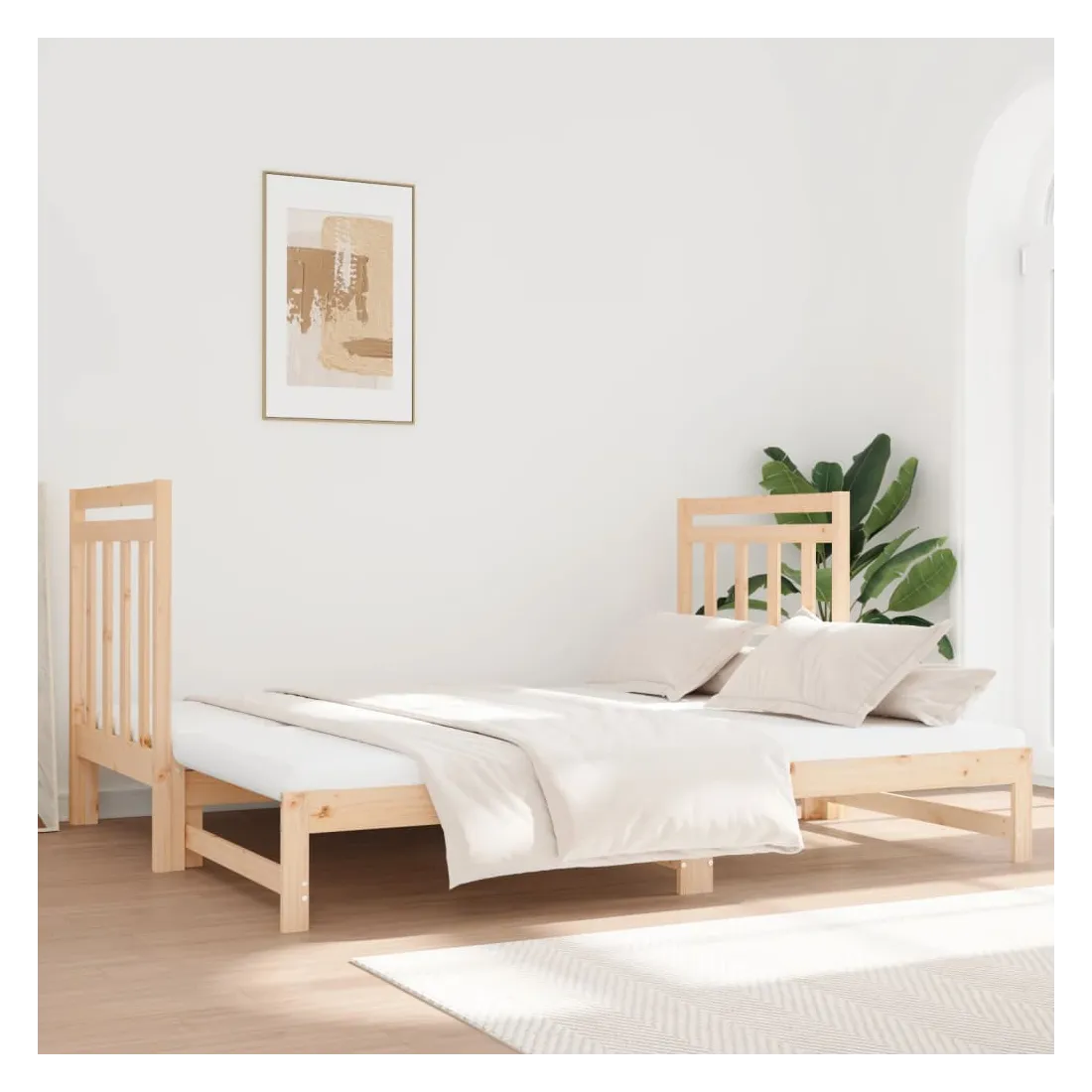 Ce lit de jour en bois polyvalent peut être utilisé comme lit dans votre chambre à coucher et s'intègre également parfaitement comme canapé dans votre salon. Bois de pin massif : le bois de pin massif est un matériau naturel magnifique. Le bois de pin a un grain droit et les nœuds donnent au matériau son aspect caractéristique et rustique. Ce lit d'appoint est en bois de pin massif, plus stable et durable.Design à lattes : le sommier à lattes permet une meilleure circulation de l'air pour garder le matelas frais plus longtemps, améliorant la capacité de poids du lit et assurant la stabilité.Utilisation facile : ce lit est très pratique à utiliser et ne nécessite pas de sommier ni de cadre. Placez simplement le matelas sur le dessus et profitez d'un sommeil réparateur ou d'un temps assis !Canapé-lit coulissant : ce lit de jour en bois peut être utilisé comme canapé pendant la journée ou comme lit la nuit, offrant une solution rapide pour accueillir des invités pour la nuit tout en économisant de l'espace.Soutien confortable : cette tête de lit vous offre un excellent soutien dorsal lorsque vous êtes assis au lit pour lire ou regarder des films. Remarque :La livraison comprend uniquement un cadre de lit de jour. Le matelas n'est pas inclus. Vous pouvez consulter notre boutique pour trouver les matelas assortis.Chaque produit est livré avec un manuel de montage dans la boîte pour un montage facile.