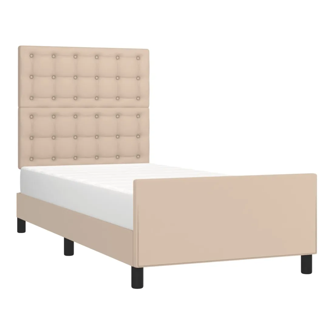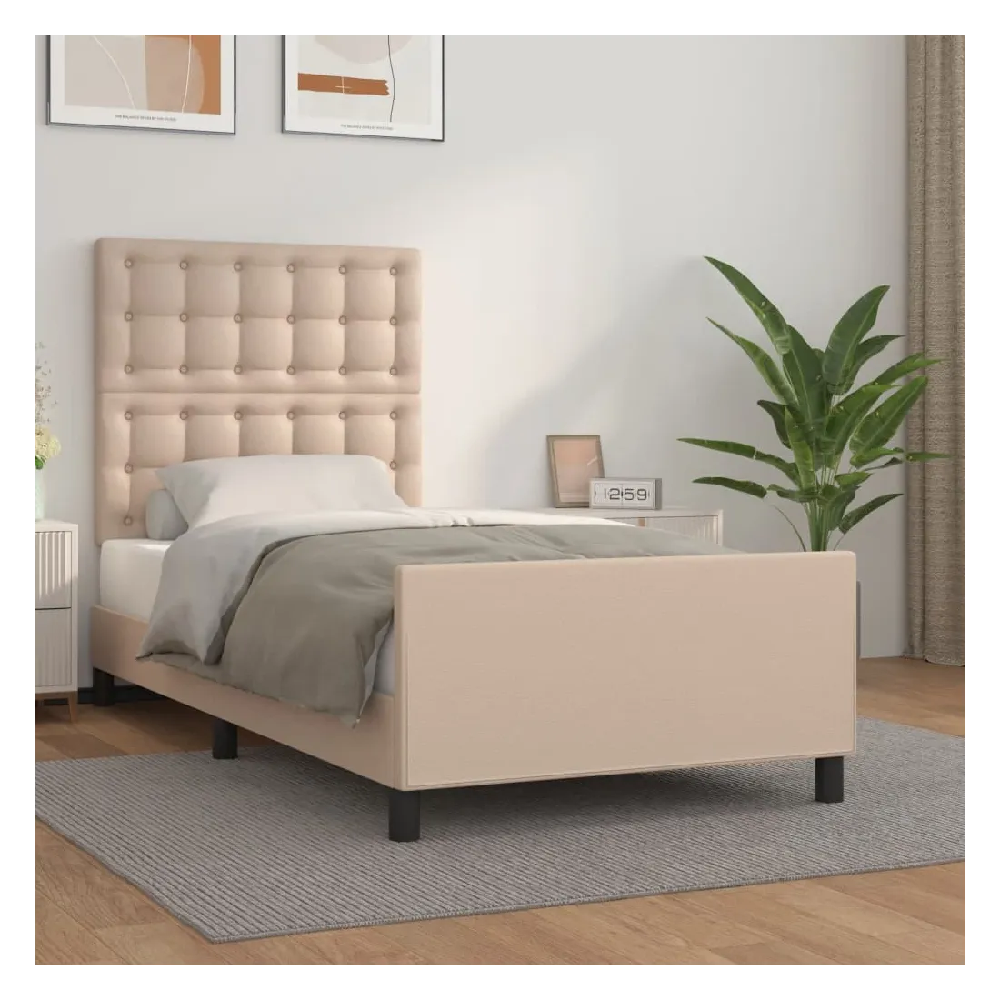 Obtenez une meilleure nuit de sommeil reposante grâce à ce cadre de lit avec tête de lit ! Il est un supplément accueillant à toute chambre à coucher. Similicuir durable : le similicuir de qualité supérieure est un matériau très durable. Il est résistant aux taches, ce qui le rend facile à nettoyer avec un chiffon humide. La surface lisse donne également un aspect luxueux et la beauté du cuir véritable.Hauteur réglable : la tête de lit est réglable en hauteur selon vos préférences.Pieds de soutien : le lit est soutenu par des pieds robustes, qui assurent sa stabilité, sa sécurité et sa fermeté.Lattes de contreplaqué : les lattes de contreplaqué assurent une bonne répartition du poids, garantissant que le matelas reste en place à chaque torsion de votre corps pendant le sommeil.Excellent soutien : la tête de lit vous offre un excellent soutien du dos lorsque vous êtes assis dans votre lit pour lire ou regarder la télévision. Remarque :La livraison comprend uniquement un cadre de lit. Le matelas n'est pas inclus. Vous pouvez consulter notre boutique pour trouver les matelas assortis.Chaque produit est livré avec un manuel de montage dans la boîte pour un montage facile.