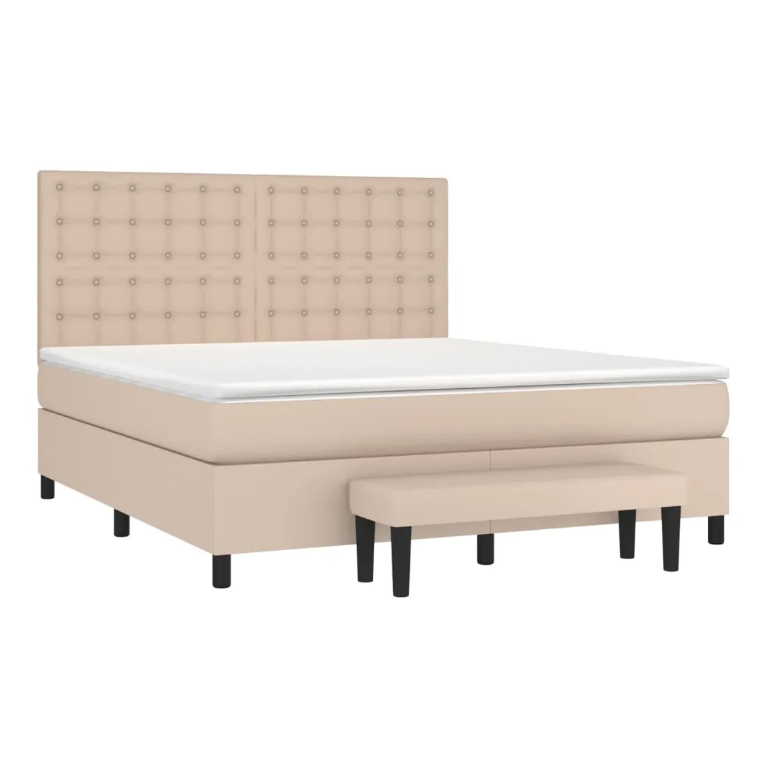Utilisez ce lit à sommier pour profiter d'une nuit de sommeil réparatrice ! Il vous offre une relaxation maximale et un sommeil agréable. Similicuir durable : le similicuir de qualité supérieure est un matériau très durable. Il est résistant aux taches, ce qui le rend facile à nettoyer avec un chiffon humide. La surface lisse donne également un aspect luxueux et la beauté du cuir véritable.Tête de lit pratique : la tête de lit est réglable en hauteur selon vos préférences. La tête de lit vous offre un excellent soutien du dos lorsque vous êtes assis dans votre lit pour lire ou regarder la télévision.Matelas à ressorts ensachés : le ressort ensaché individuel intégré est connu pour sa très haute qualité tout en assurant un haut niveau de durabilité et d'adaptabilité. Il peut absorber efficacement le bruit et les chocs causés par les sauts et les rotations.Support moyen-dur : ce matelas de lit offre une stabilité accrue et juste le niveau de fermeté sans sacrifier le confort. Il est donc idéal pour les personnes qui dorment sur le dos ou sur le ventre.Protège-matelas doux pour la peau : le protège-matelas est recouvert d'un tissu résistant et doux pour la peau, ce qui le rend souple et confortable.Banc multifonctionnel : ce banc peut servir de siège supplémentaire dans votre maison. Il peut également être utilisé comme banc de bout de lit. Remarque :Pour des raisons d'hygiène, le matelas ne peut pas être retourné si l'emballage est retiré ou ouvert.Chaque produit est livré avec un manuel de montage dans la boîte pour un montage facile.