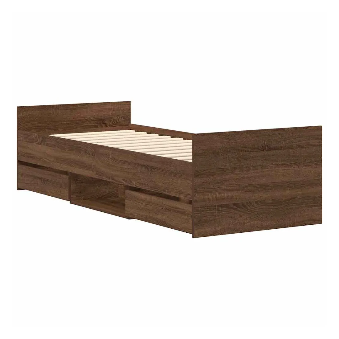 Obtenez une meilleure nuit de sommeil reposante grâce à ce cadre de lit ! Il est un supplément accueillant à toute chambre à coucher. Matériau durable : le bois d'ingénierie est d'une qualité exceptionnelle avec une surface lisse et présente également résistance, stabilité et résistance à l'humidité.Tête de lit et pied de lit fonctionnels : la tête et le pied de lit du sommier maintiennent votre matelas en place. De plus, la tête de lit vous offre un excellent soutien du dos lorsque vous vous asseyez dans le lit pour lire ou regarder la télévision.Grand espace de rangement : ce lit d'appoint dispose de 4 tiroirs et des étagères qui offrent suffisamment d'espace pour ranger vos vêtements, chaussettes, jouets, coussins, etc.Lattes robustes : les lattes de contreplaqué assurent une bonne répartition du poids, garantissant que le matelas reste en place à chaque torsion de votre corps pendant le sommeil. Bon à savoir :Un matelas n'est pas inclus avec ce lit. Nous offrons une sélection variée de matelas. Vous pouvez consulter notre boutique pour trouver un matelas assorti.