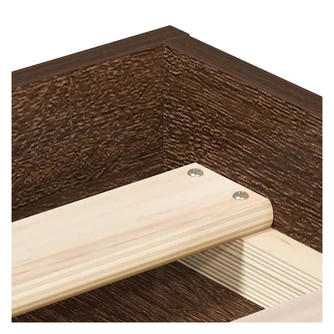 Prenez la voie moderne vers votre chambre à coucher avec ce cadre de lit ! Il sera un supplément pratique et décoratif à votre intérieur. Matériau durable : le bois d'ingénierie est d'une qualité exceptionnelle avec une surface lisse et présente également résistance, stabilité et résistance à l'humidité.Lattes de contreplaqué : les lattes de contreplaqué assurent une bonne répartition du poids, garantissant que le matelas reste en place à chaque torsion de votre corps pendant le sommeil.Espace de rangement supplémentaire : le lit d'appoint dispose d'un total de 6 compartiments sur deux côtés du lit pour ranger des objets comme des livres, des plantes en pot et d'autres décorations. Bon à savoir :Un matelas n'est pas inclus avec ce lit. Nous offrons une sélection variée de matelas. Vous pouvez consulter notre boutique pour trouver un matelas assorti.