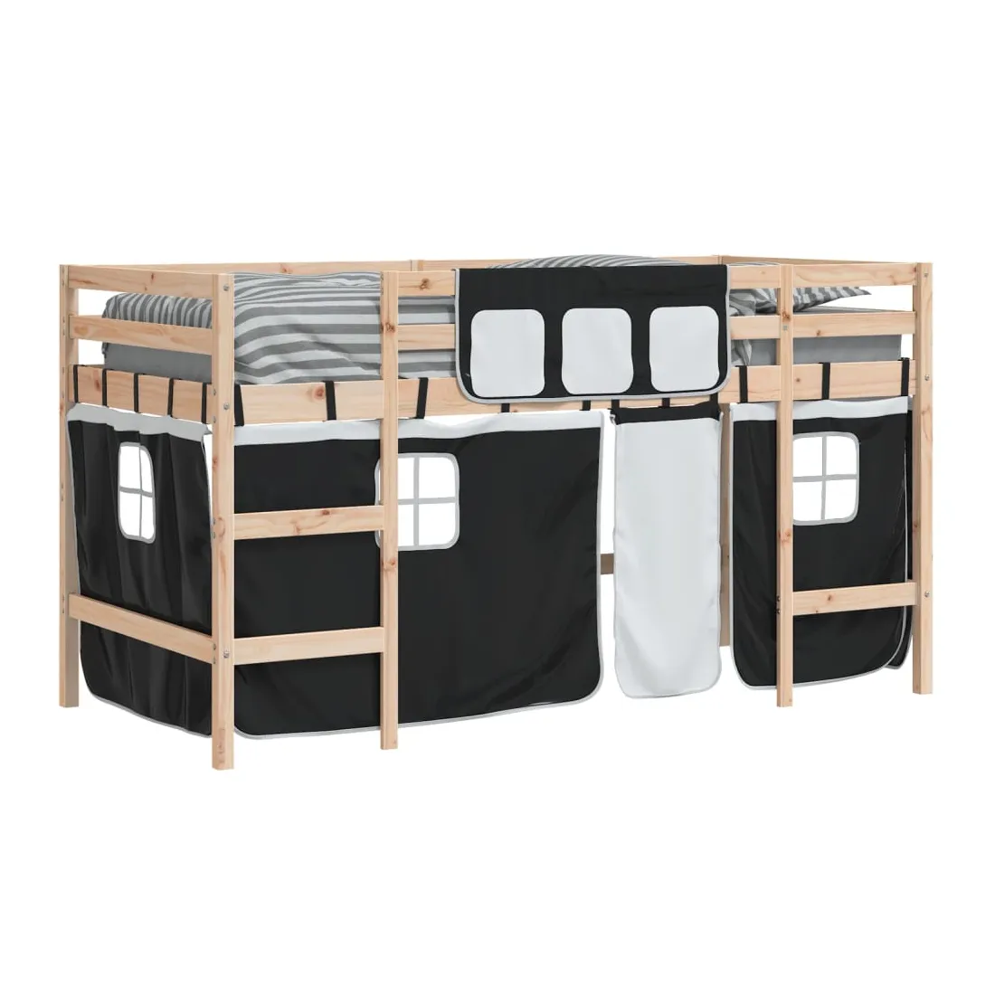 Ce lit mezzanine pour enfants est fabriqué en pin massif et est conçu pour recevoir et optimiser l'espace. Construction en bois stable : ce lit intermédiaire est fabriqué en bois de pin massif pour plus de stabilité et de durabilité. Le bois de pin a un grain droit et les nœuds donnent au matériau son aspect rustique caractéristique. Utilisation optimale de l'espace : ce lit mezzanine simple est surélevé de 78,5 cm par rapport au sol, ce qui laisse beaucoup d'espace en dessous pour le rangement ou d'autres activités. Cet espace peut être utilisé pour empiler des boîtes de rangement, ranger de gros jouets ou même placer un canapé pour enfants pour la lecture. Très amusant : vous pouvez combiner les rideaux avec le cadre de lit pour créer la base secrète de votre enfant, ce qui permet de s'amuser à l'heure du coucher et d'ajouter un point d'intérêt à la chambre ! Barrières de sécurité : le lit mezzanine pour enfants est équipé de garde-corps de sécurité sur les 4 côtés, afin que votre enfant puisse dormir sans craindre de tomber. Échelle pratique : ce lit mezzanine pour enfants est doté d'une échelle qui permet de monter et de descendre dans et du lit en toute simplicité. Elle apporte également de la joie et transforme leur chambre en terrain de jeu intérieur. Bon à savoir :Un matelas n'est pas inclus avec ce lit. Nous offrons une sélection variée de matelas. Vous pouvez consulter notre boutique pour trouver un matelas assorti. Attention :Pour éviter qu'il ne soit renversé, ce produit doit être utilisé avec le dispositif de fixation au mur fourni.